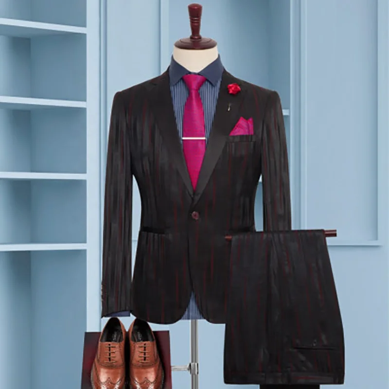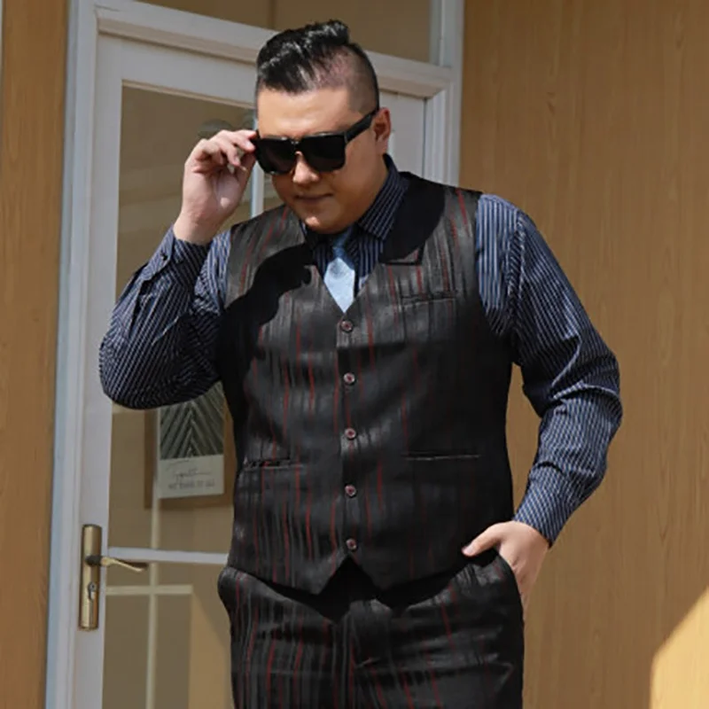 Plus-size Double Breasted Men's Business Striped Wedding Best Man Three-piece Slim Luxury Anti-Wrinkle Suit Wholesale