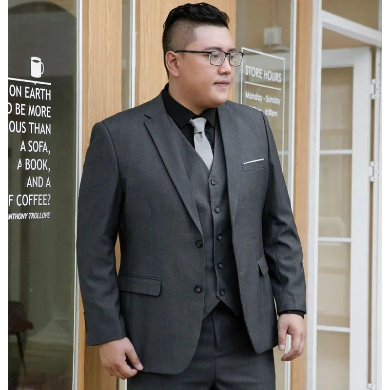 High Quality New Loose Business Slim Double Buckle Plus Size Men's Suit Wedding Set 3 Pieces Anti-Wrinkle Viscose Blend