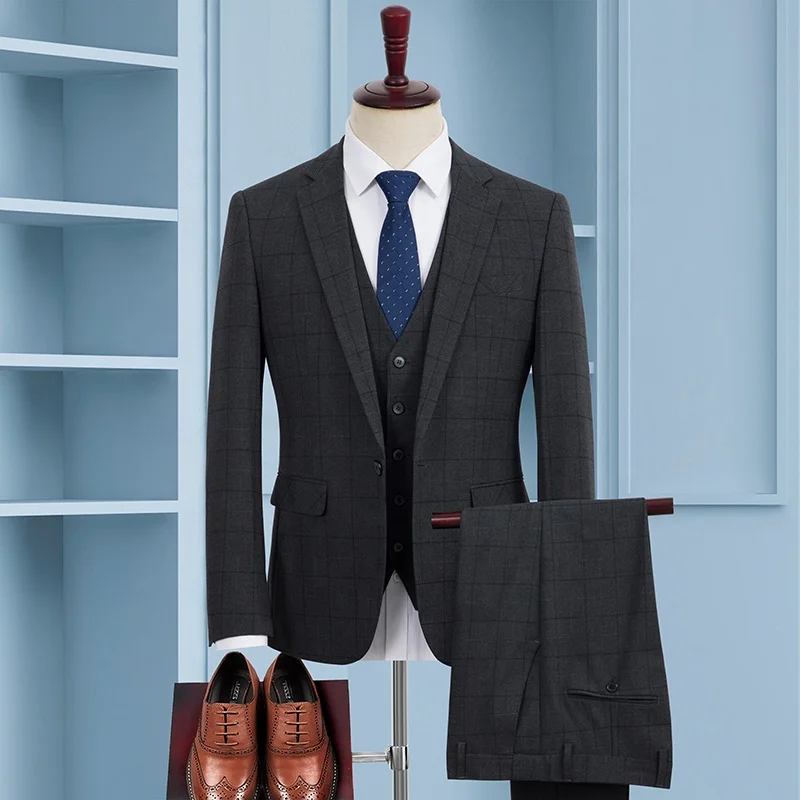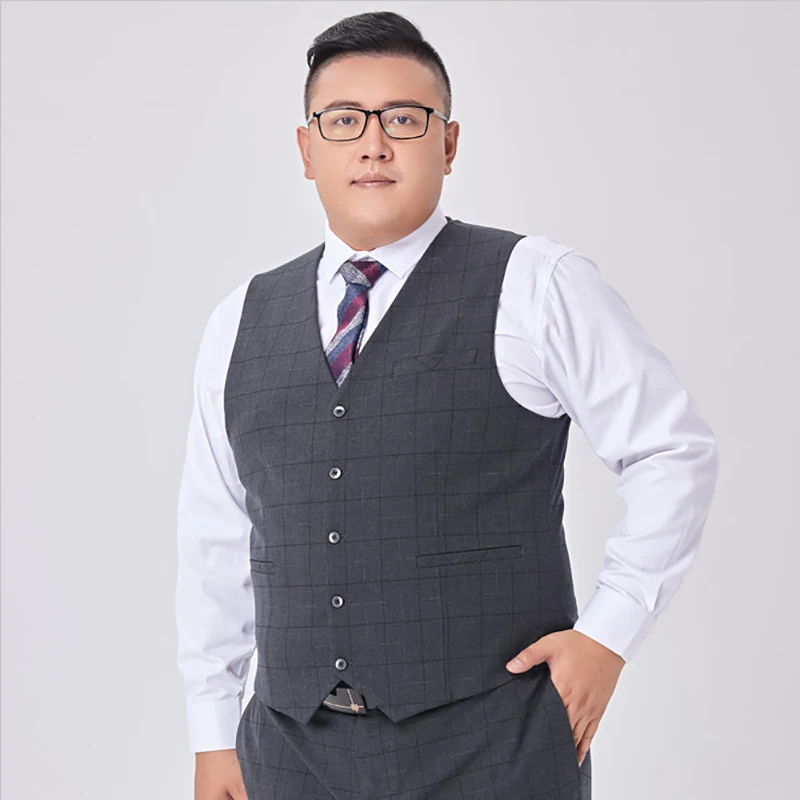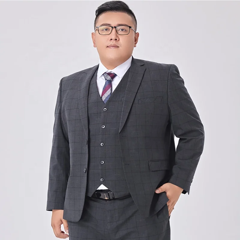 Plus-size Suit Men's Loose Wedding Dress Fat Suit Men's Grey Plaid Business Casual