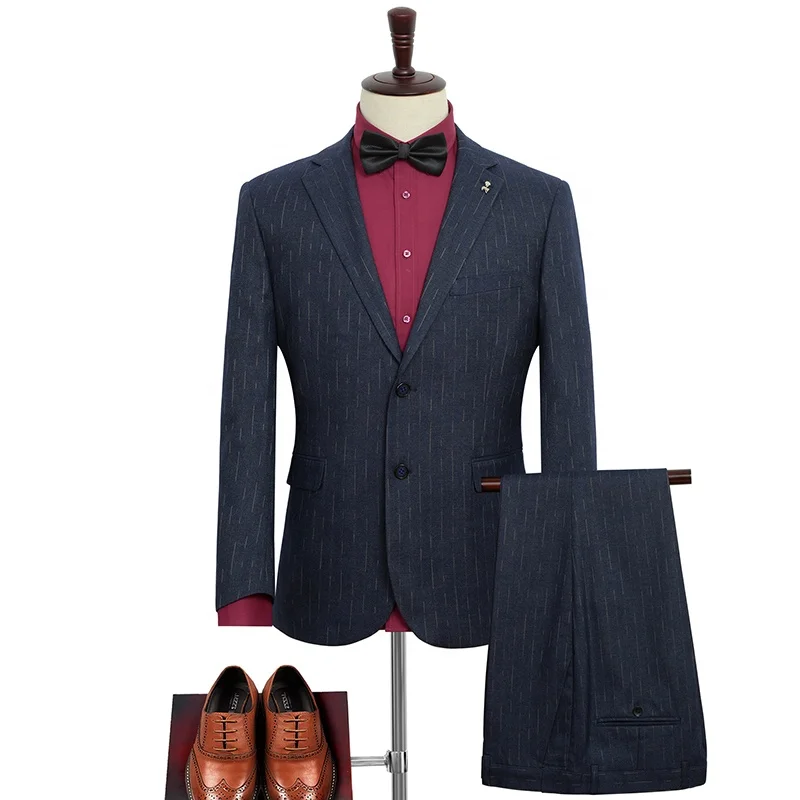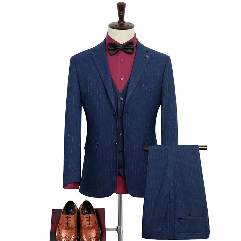 Plus-size Men's Suit Blue Slub Stripes Business Casual Loose Suit Combined with Formal Dress