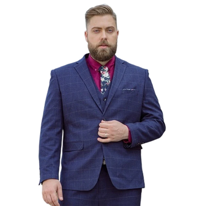 Plus-size Ink-blue Plaid Three-piece Business Casual European Edition Loose Suit Anti-Static Anti-Wrinkle Customizable Color