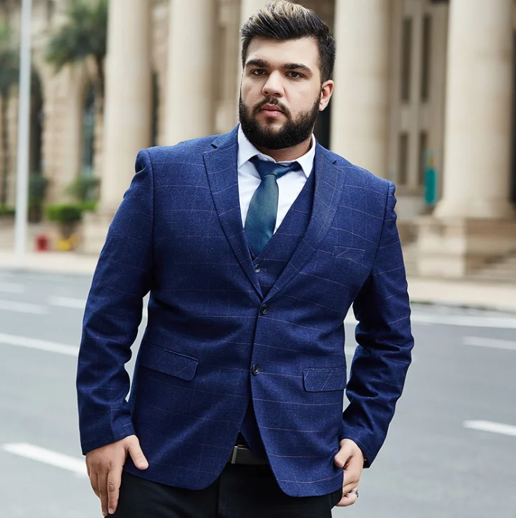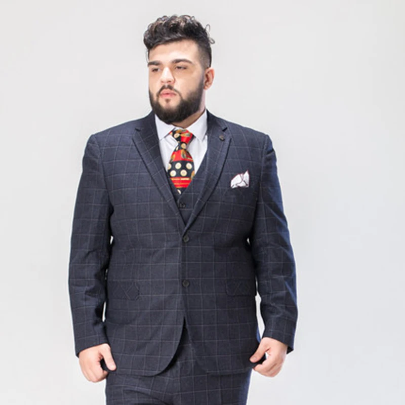 Men's Suit Red Plaid Three-piece Set Plus-size Business Casual Fat Loose Suit Wedding