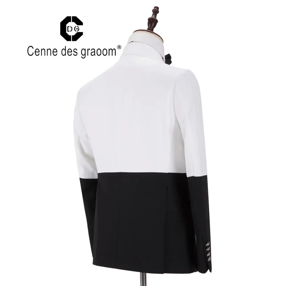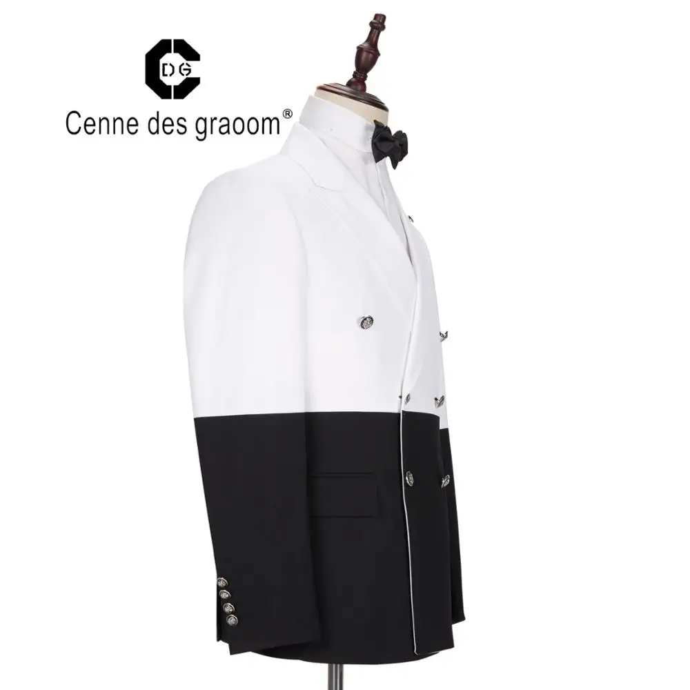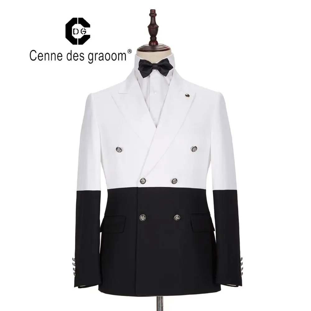 New Design Stylish Slim Fit 2 Pieces Wedding Suits for Men White with Black Double Vest Suit