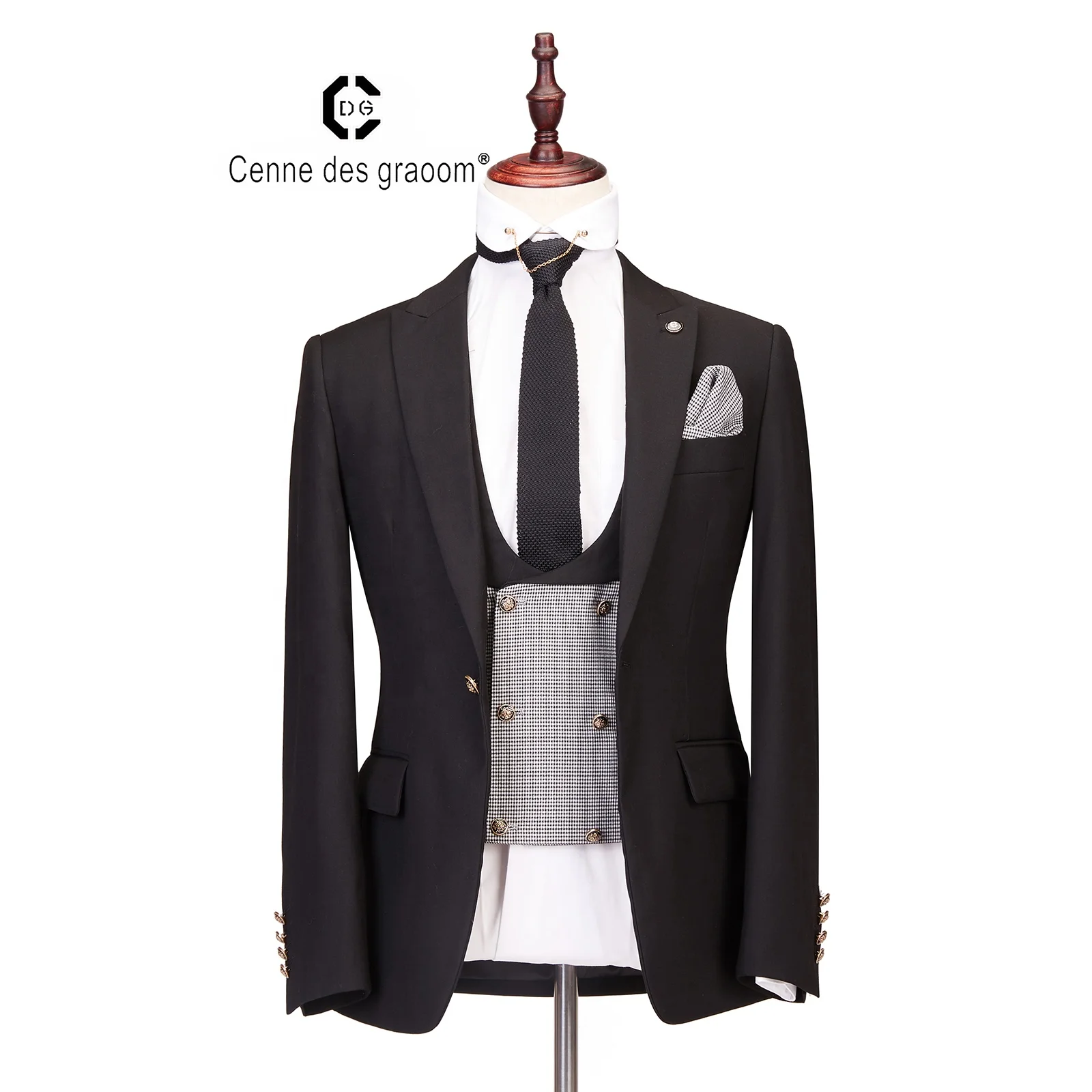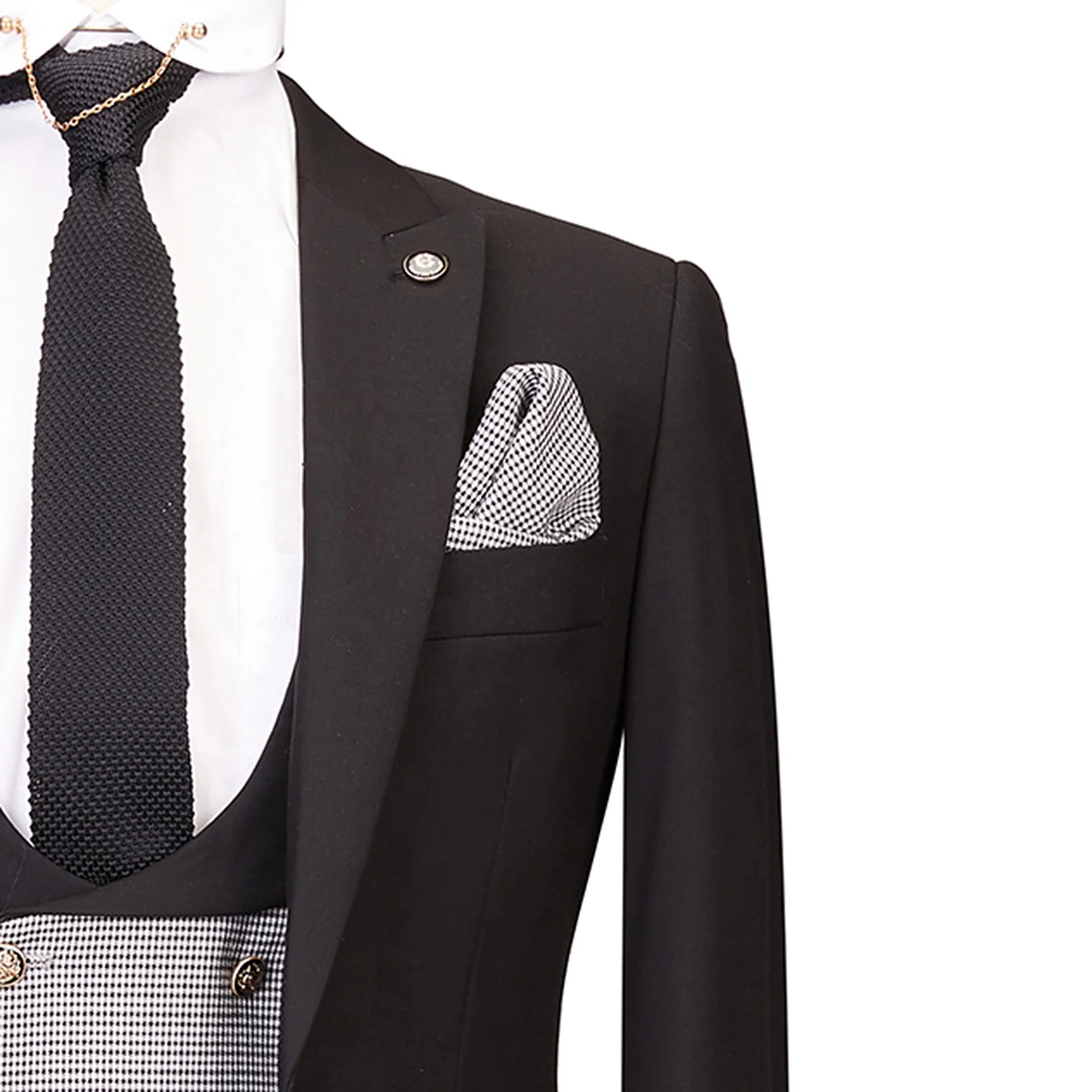 Custom Men's Three Button Suits Wool Polyester Black Business Suit Set