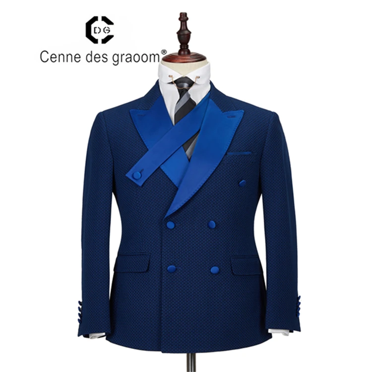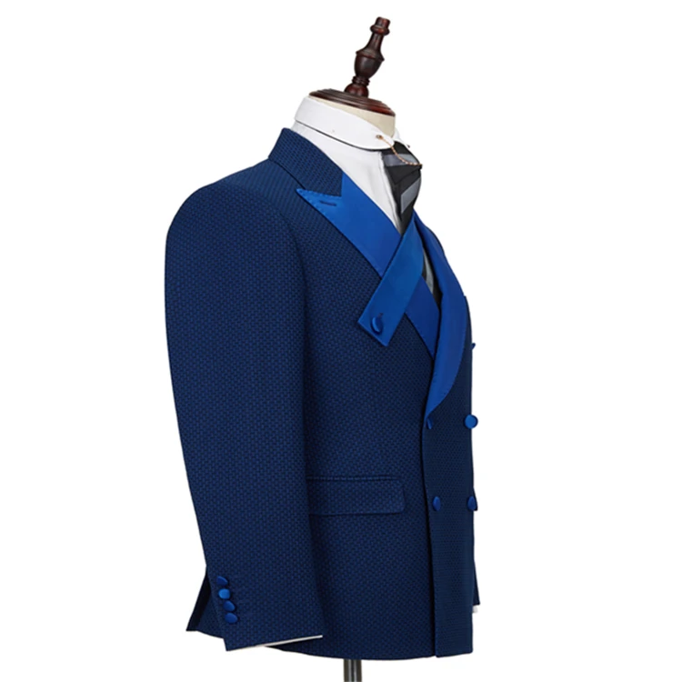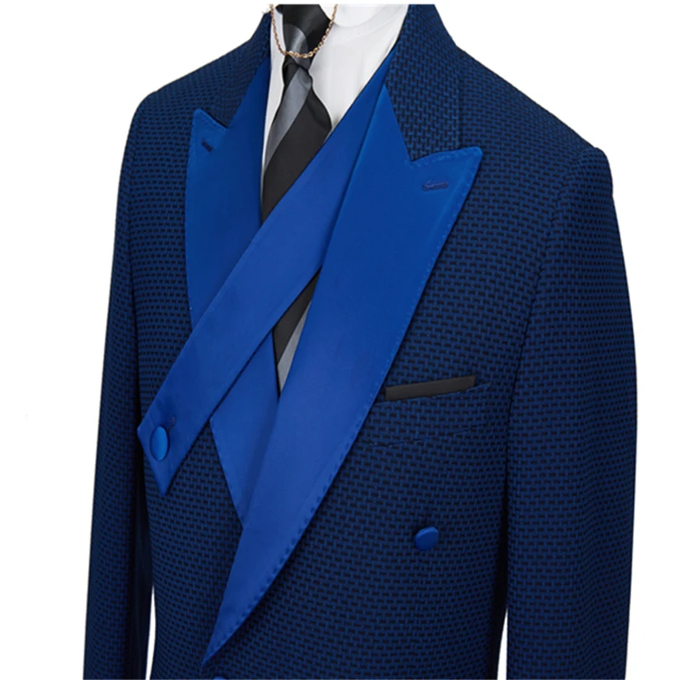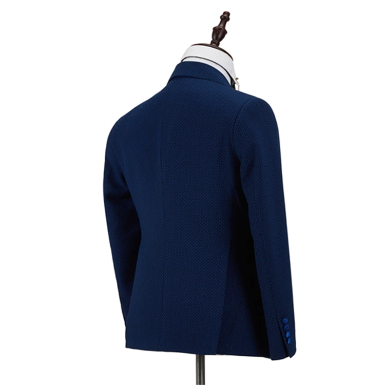 High Quality Bespoke Wholesale Dark Blue Wool V-neck Men's Casual Suits Set