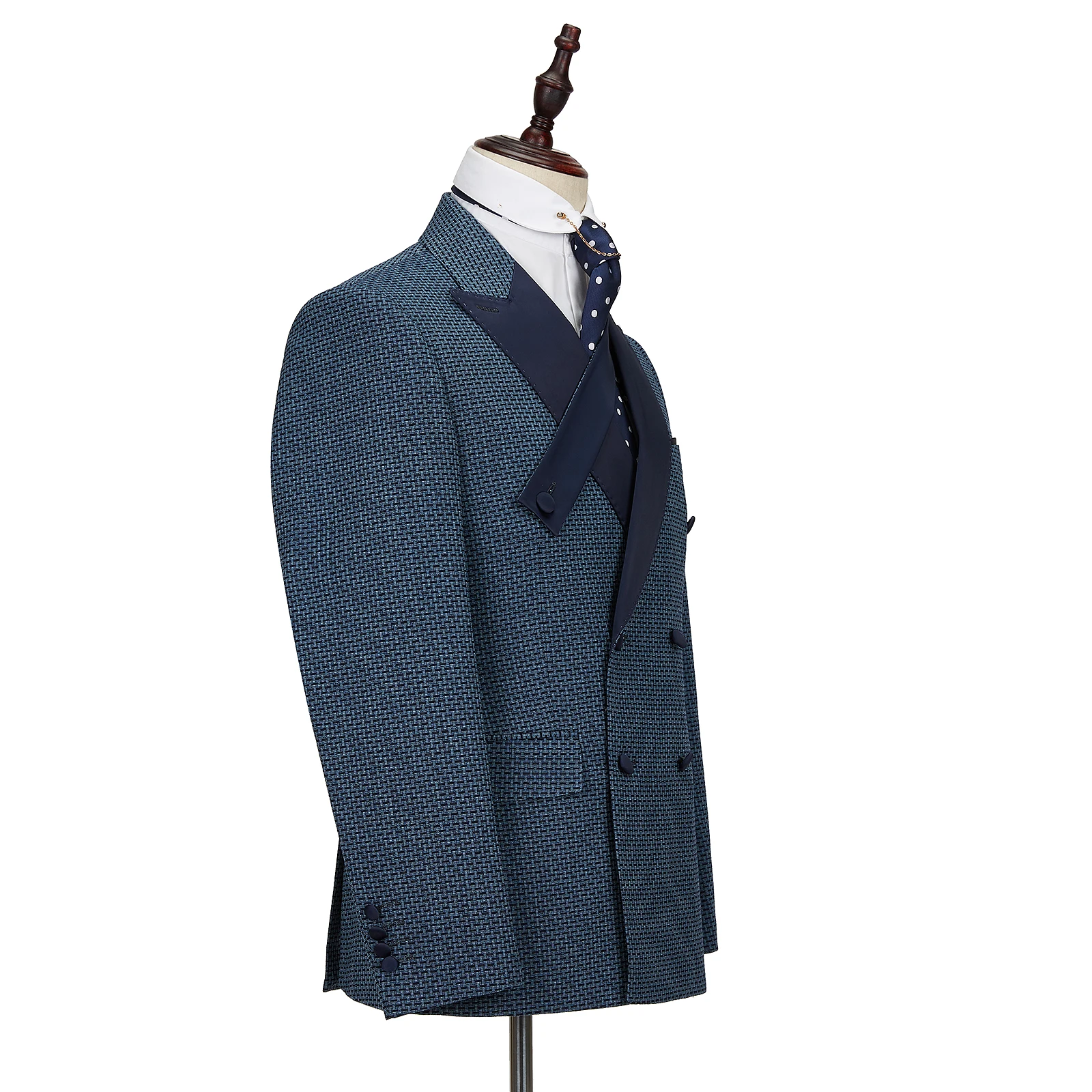 Mens Suits 2 Piece Slim Fit Double Breasted Blue Color Wedding Suit for Cenne Des Graoom Lapel Blazer Trousers