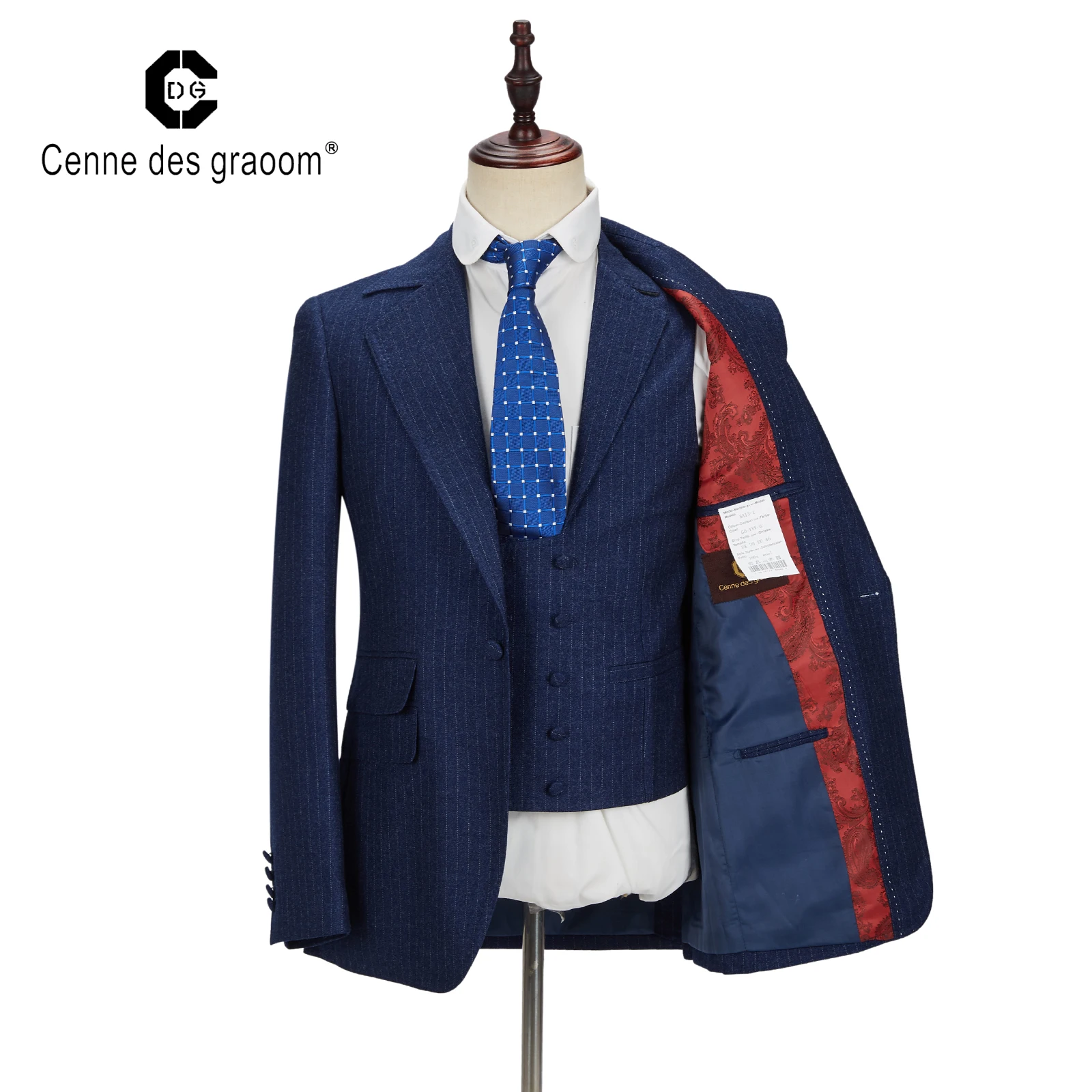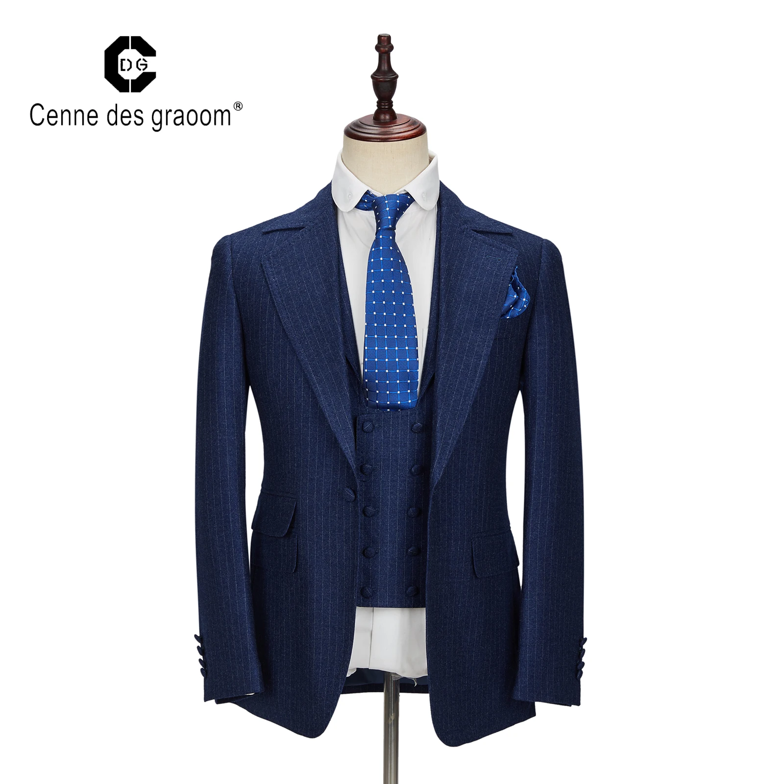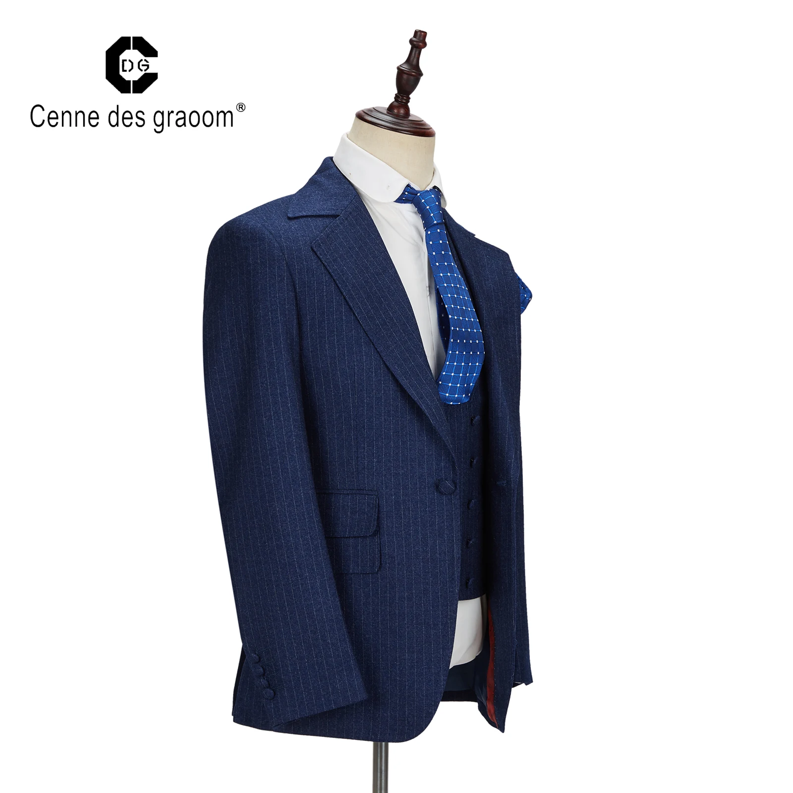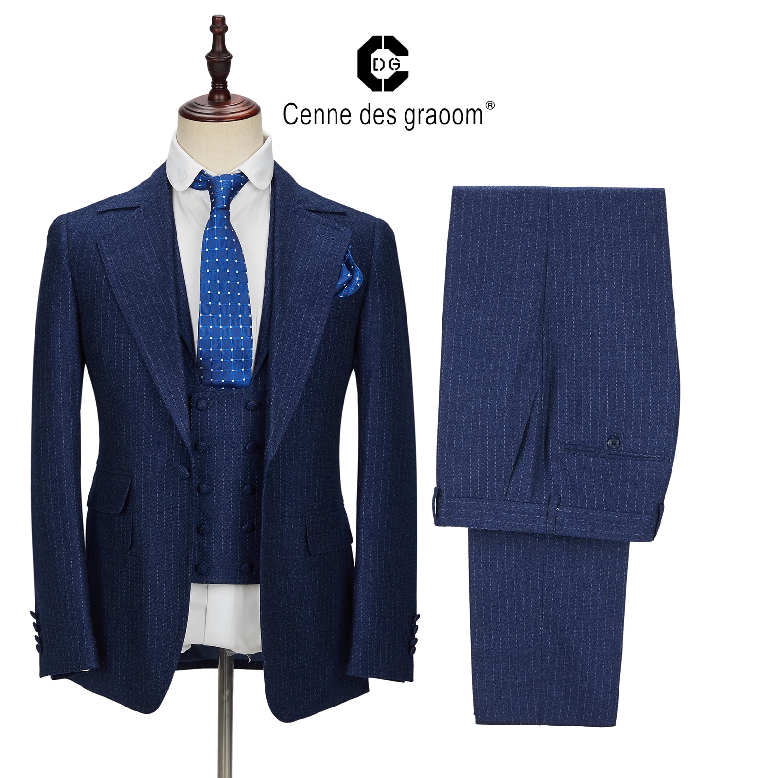 Striped blazer Mens Slim Fit Fashion Style Navy Blue and White Stripe Men Suit