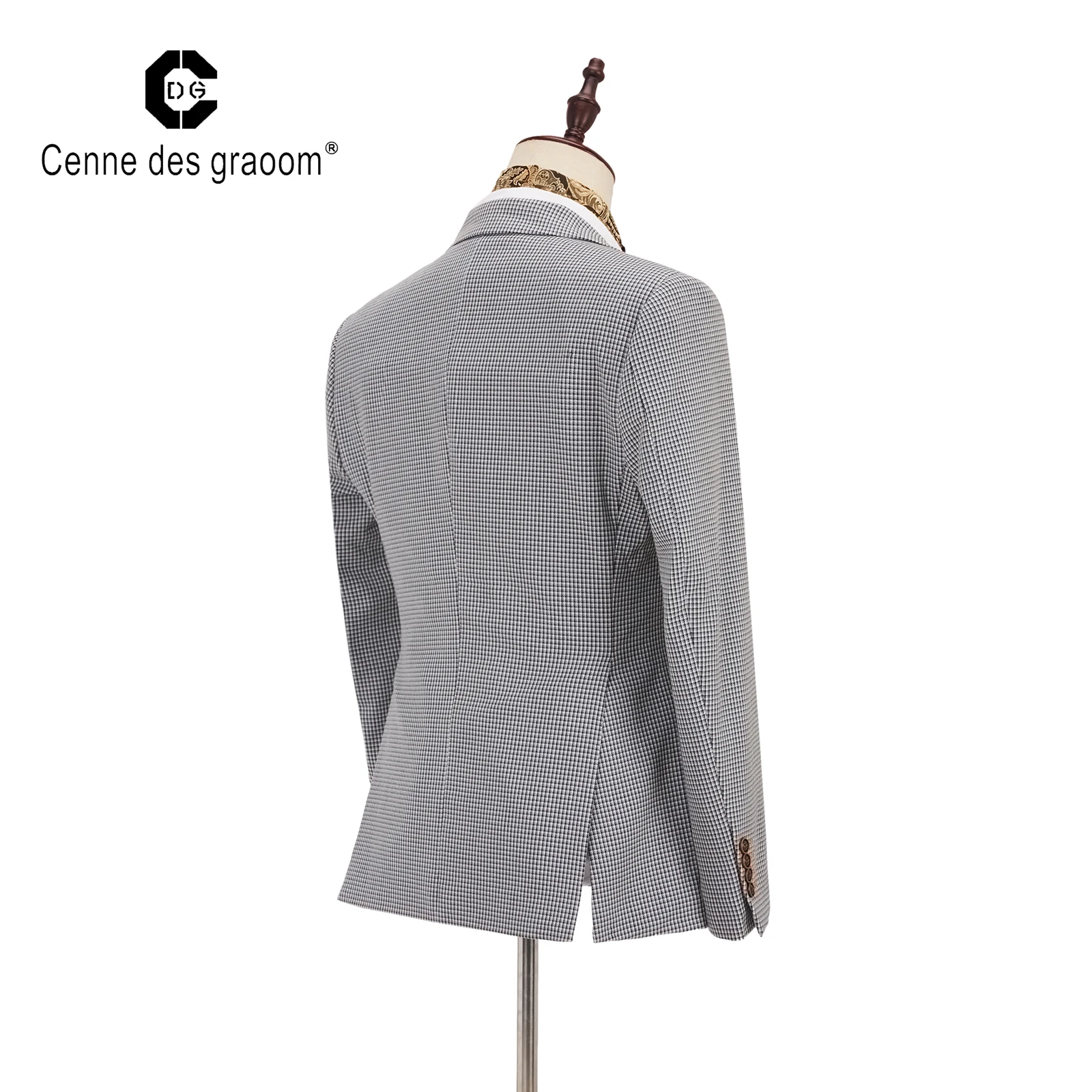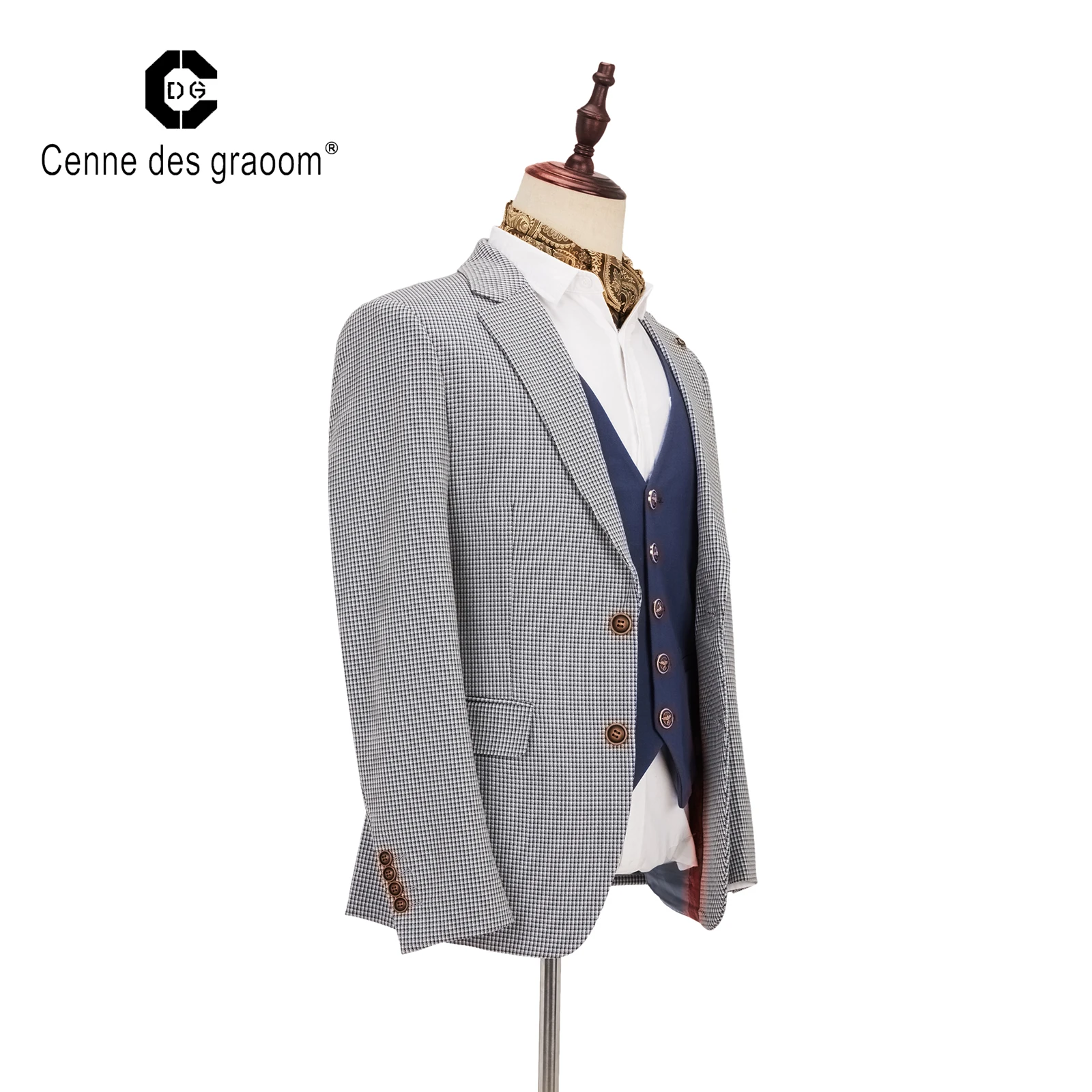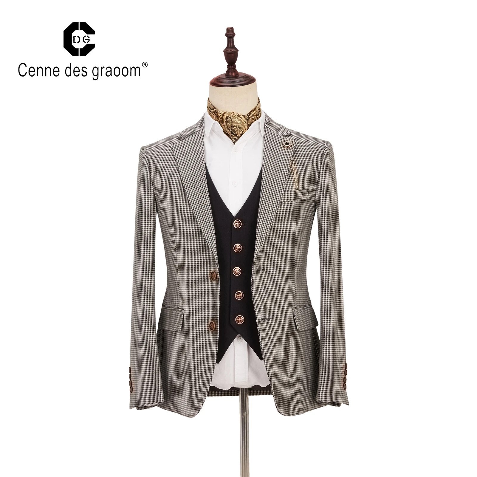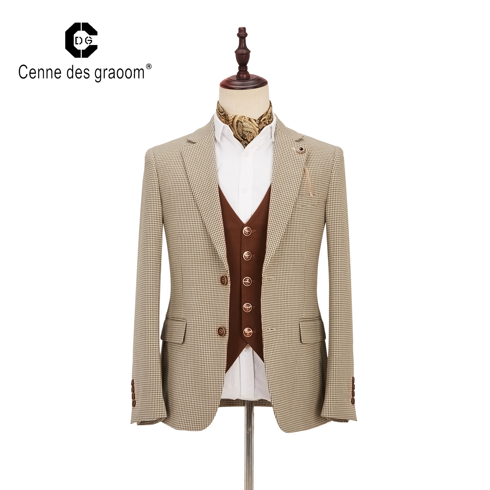 2020 New Design Plaid Coat Pure Color Vest Suits 100% Cotton Full Sleeve 2 Button 3 Piece Suits