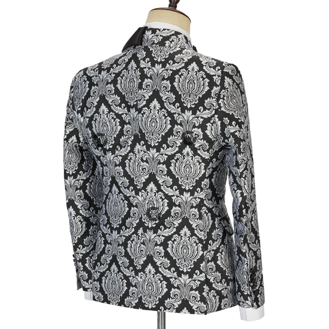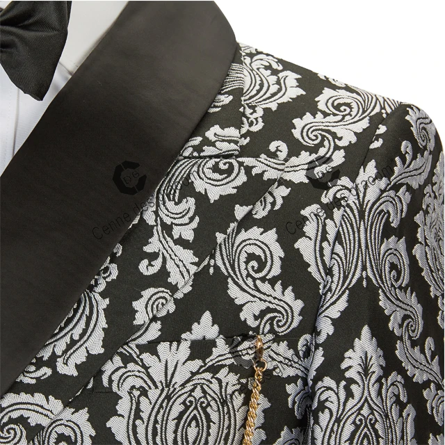 Cenne Des Graoom New Men Suits Lapel Jacquard Floral Pattern Tailor-Made Tuxedo 2 Pieces Wedding Party Groom Costume Homme