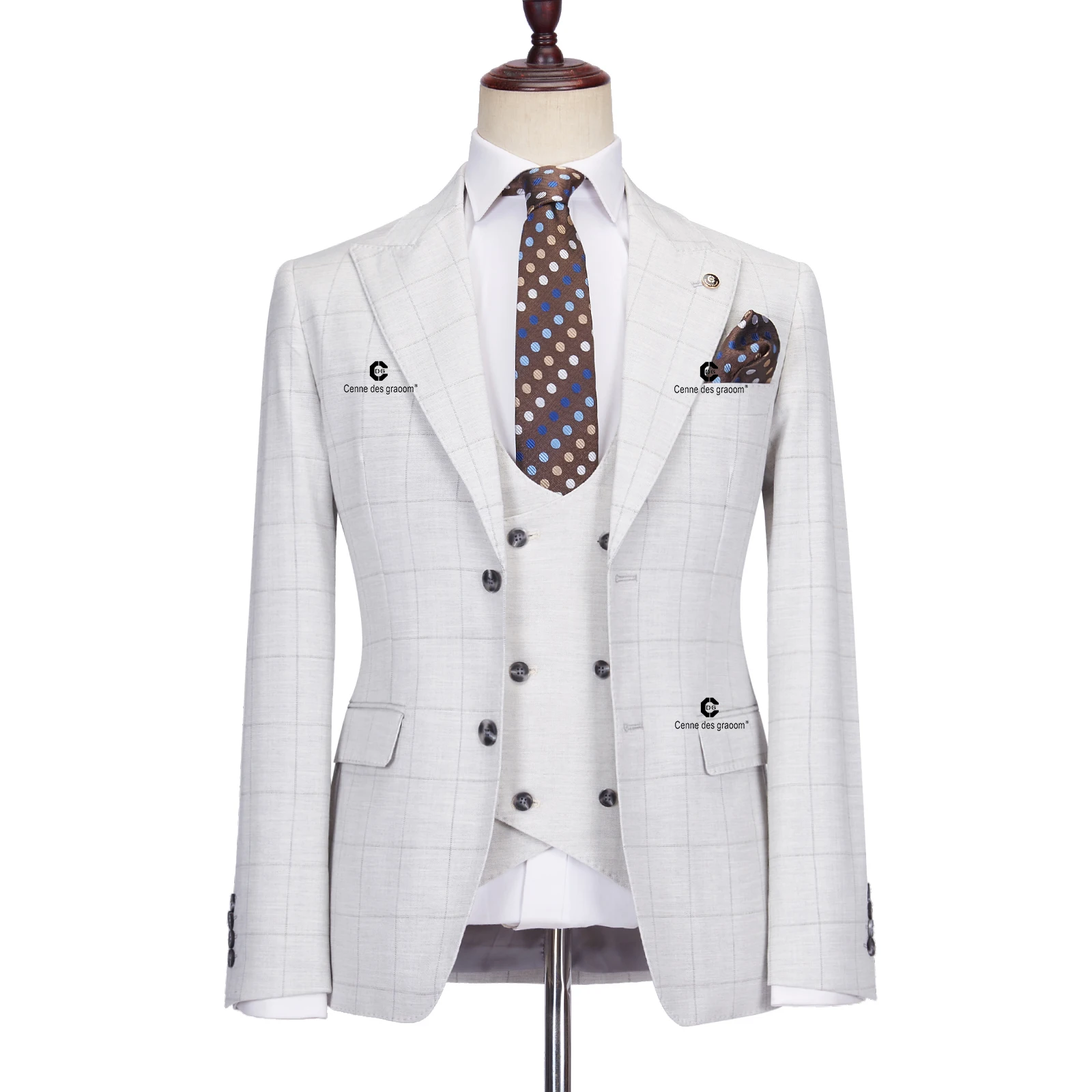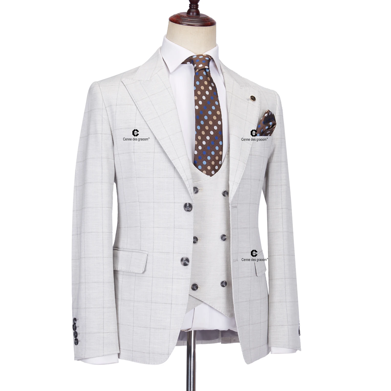 Cenne Des Graoom 2023 Elegant Plaid Suits for Men Tailor-Made Slim Fit Jacket Vest Pants 3 Pcs Set Groom Business Office Meeting