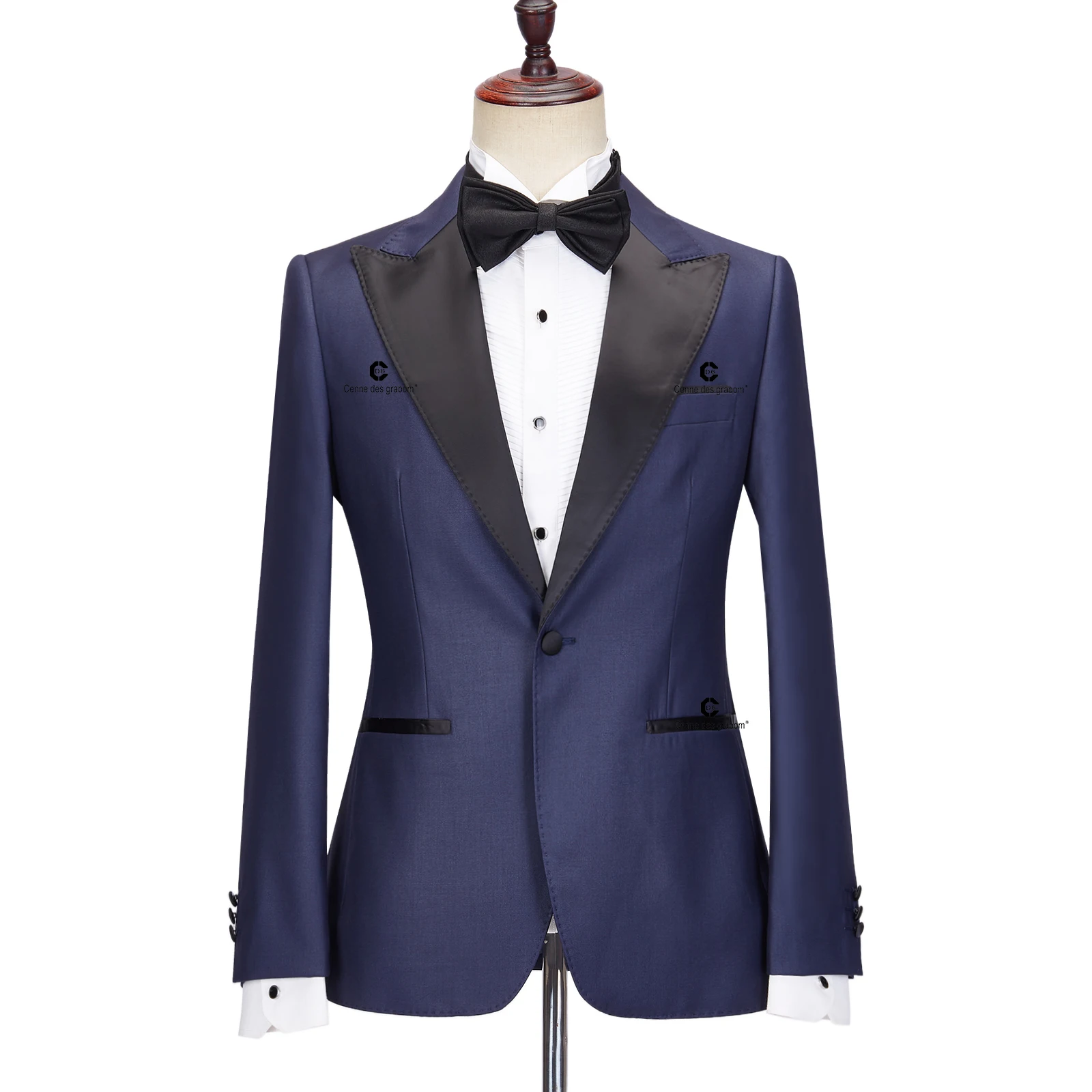 Cenne Des Graoom 2023 Tuxedo Suits for Men Black Satin Lapel Slim Fit Solid One Button Elegant Wedding Party Evening Dress