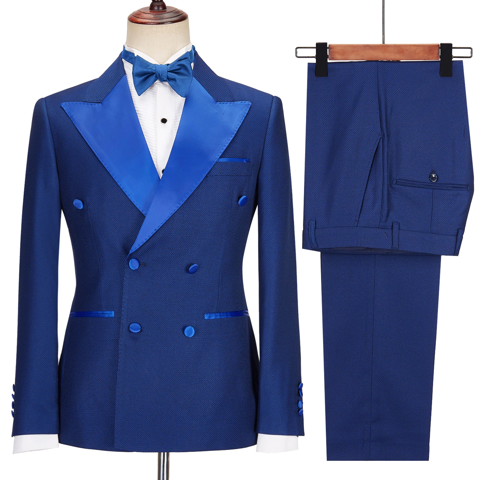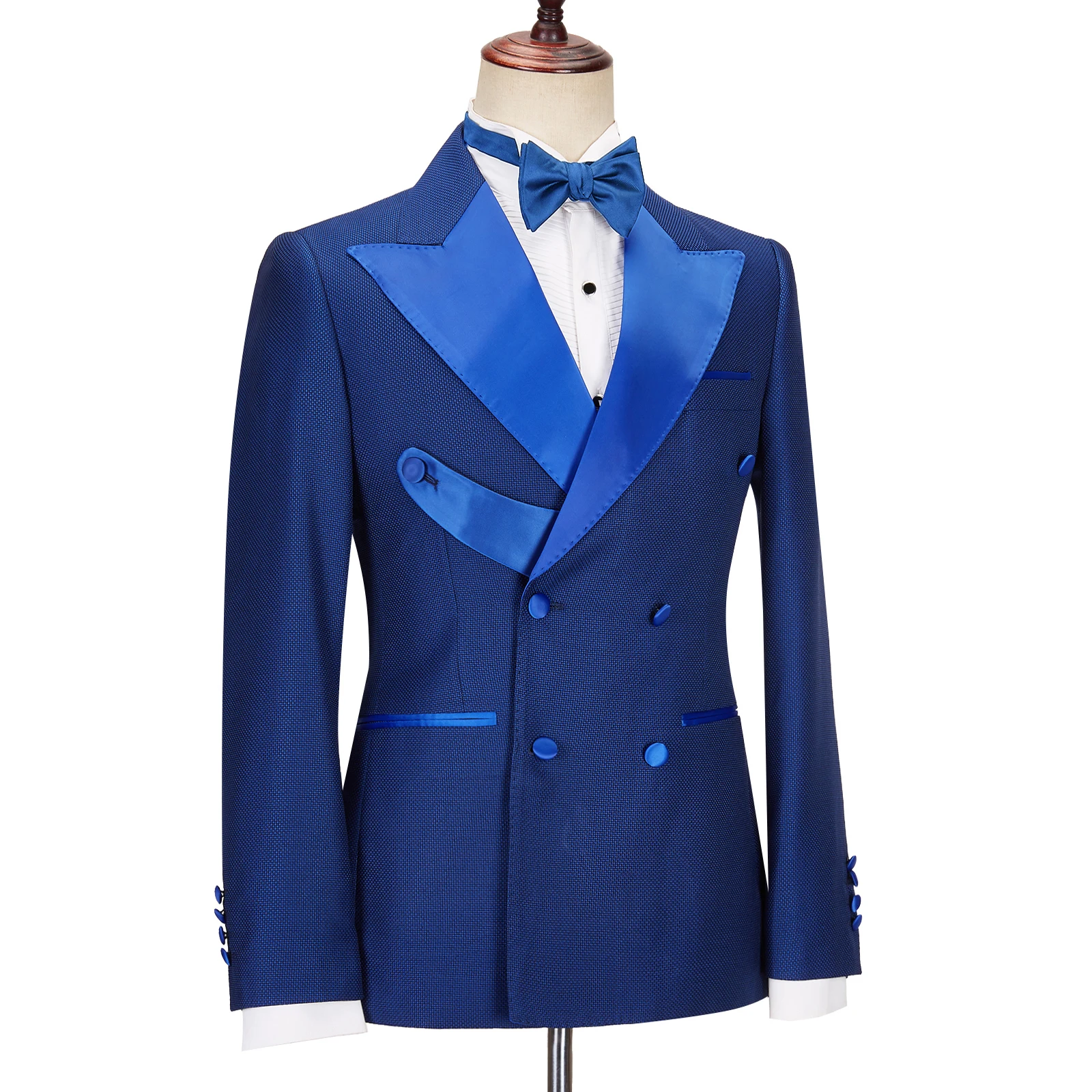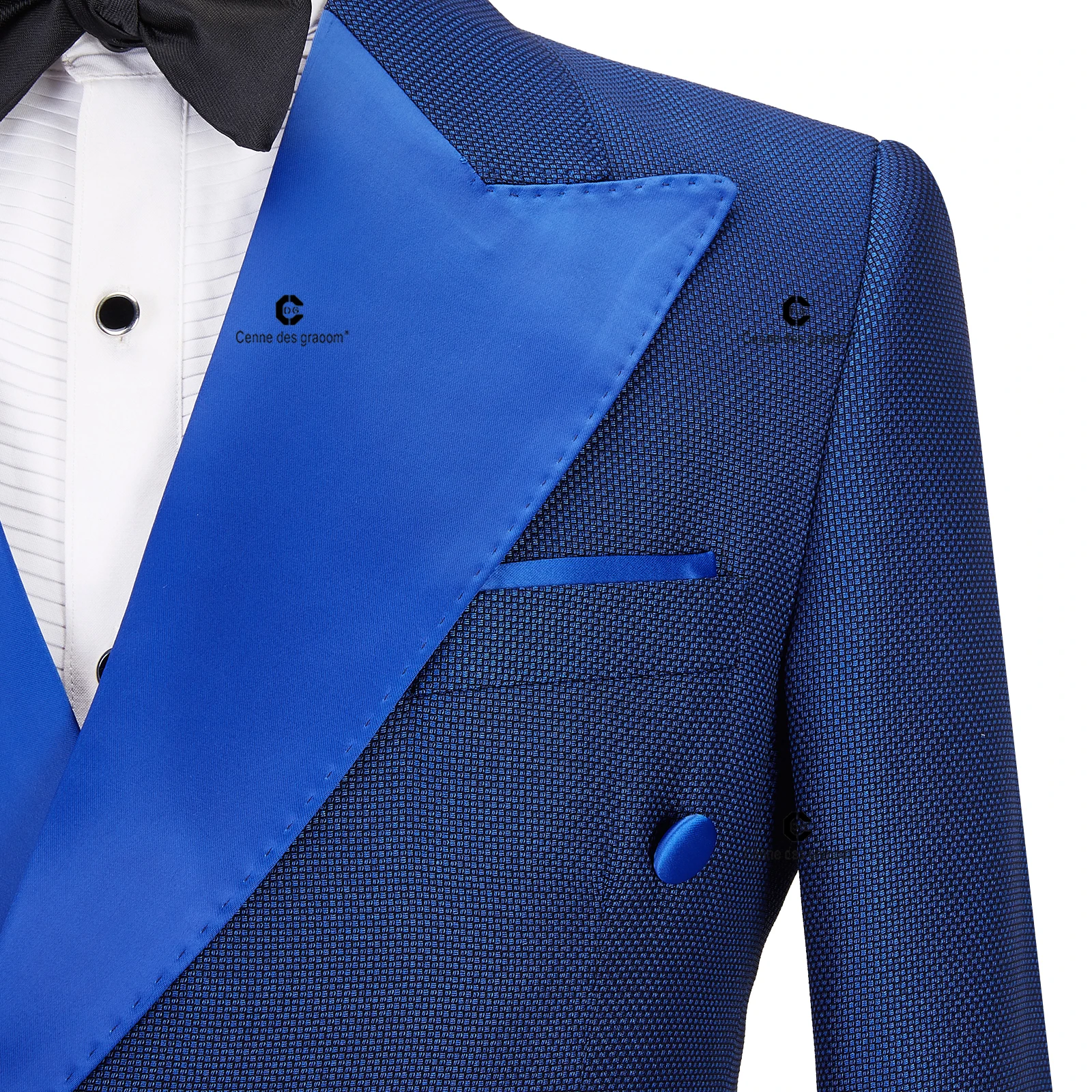 Cenne Des Graoom 2022 New Men Suits Double Breasted Tailor-Made Lapel Royal Blue 2 Pieces Blazers Pants Groom Wedding Party