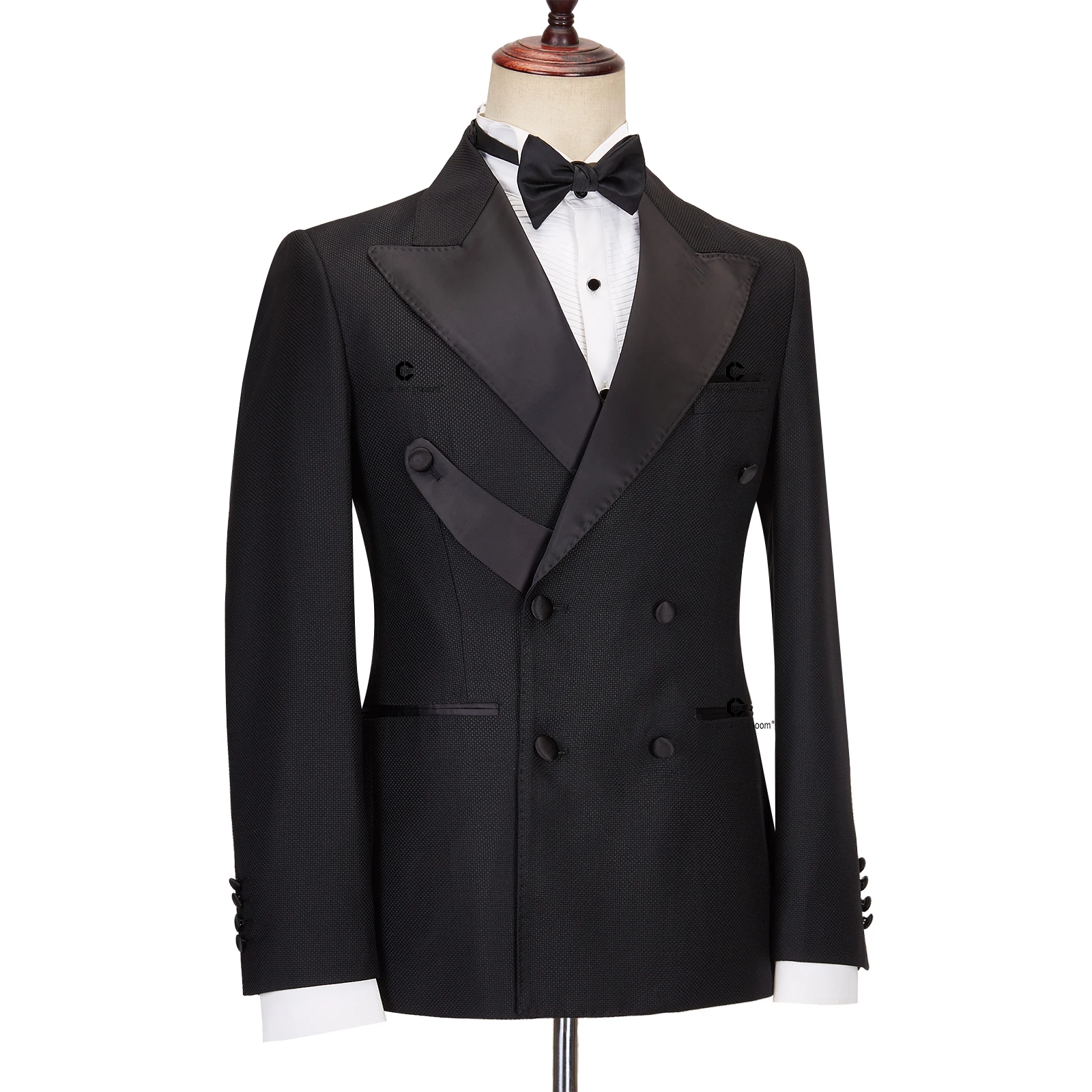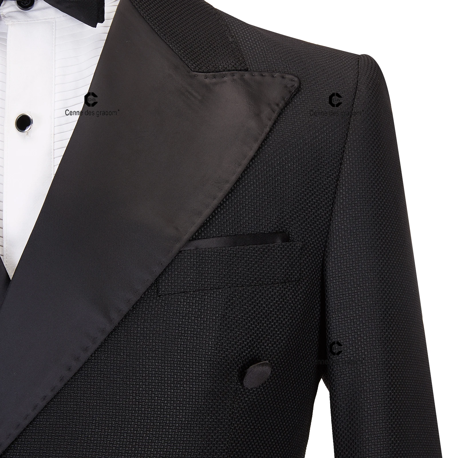 Cenne Des Graoom Black Men Suits Double Breasted 2021 Latest Design Groom Wedding Tuxedos Best Costume Homme 2 Pieces