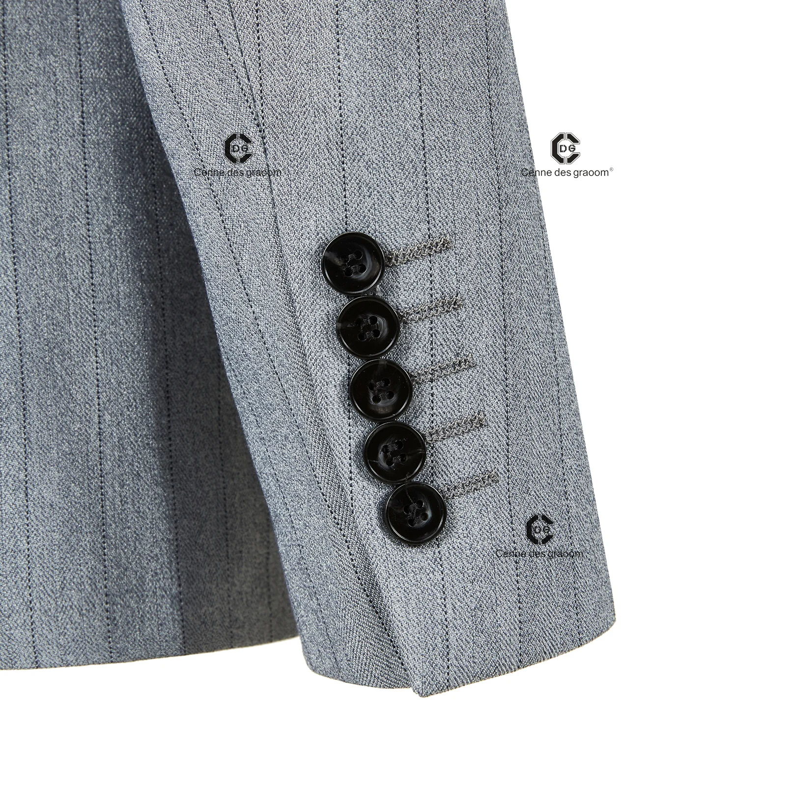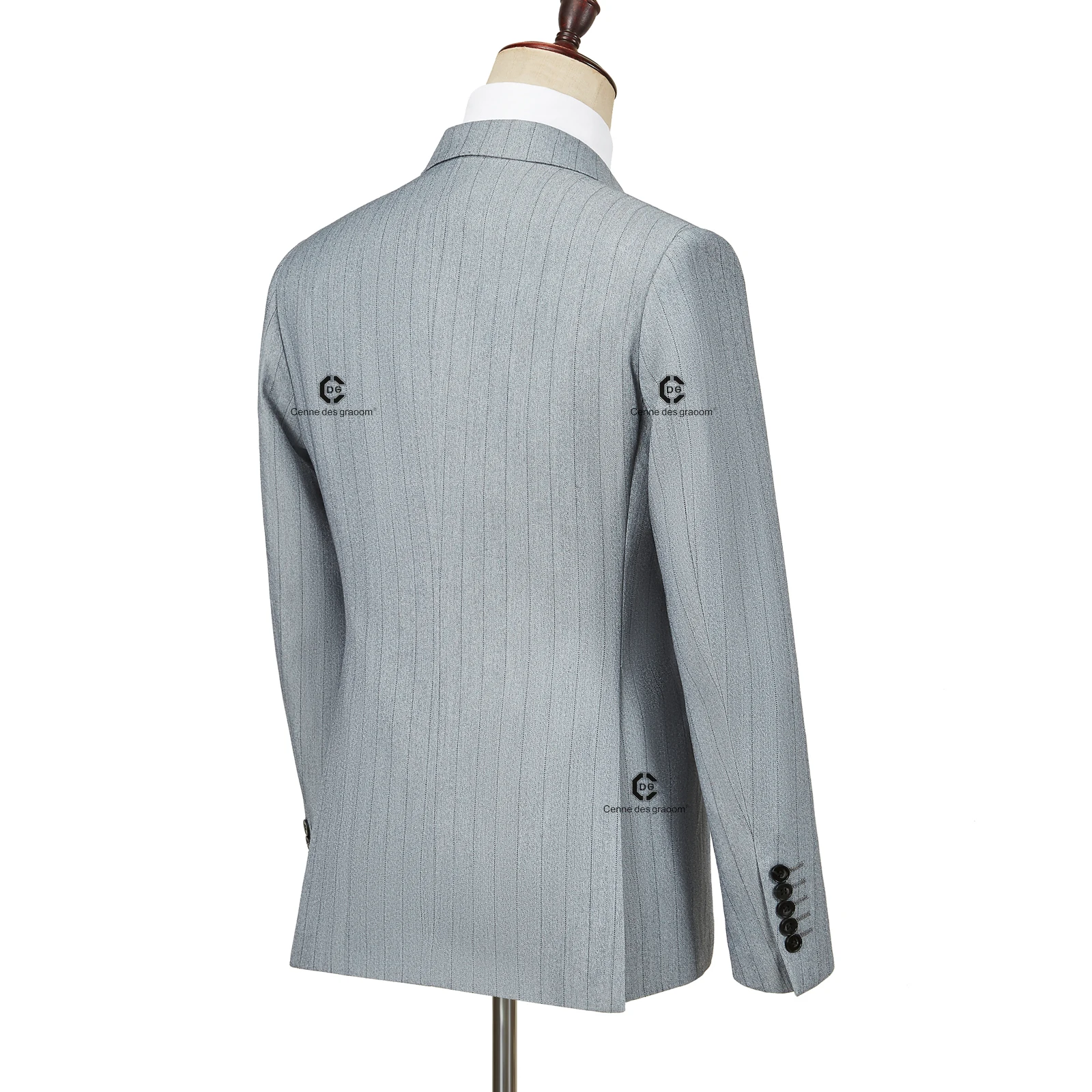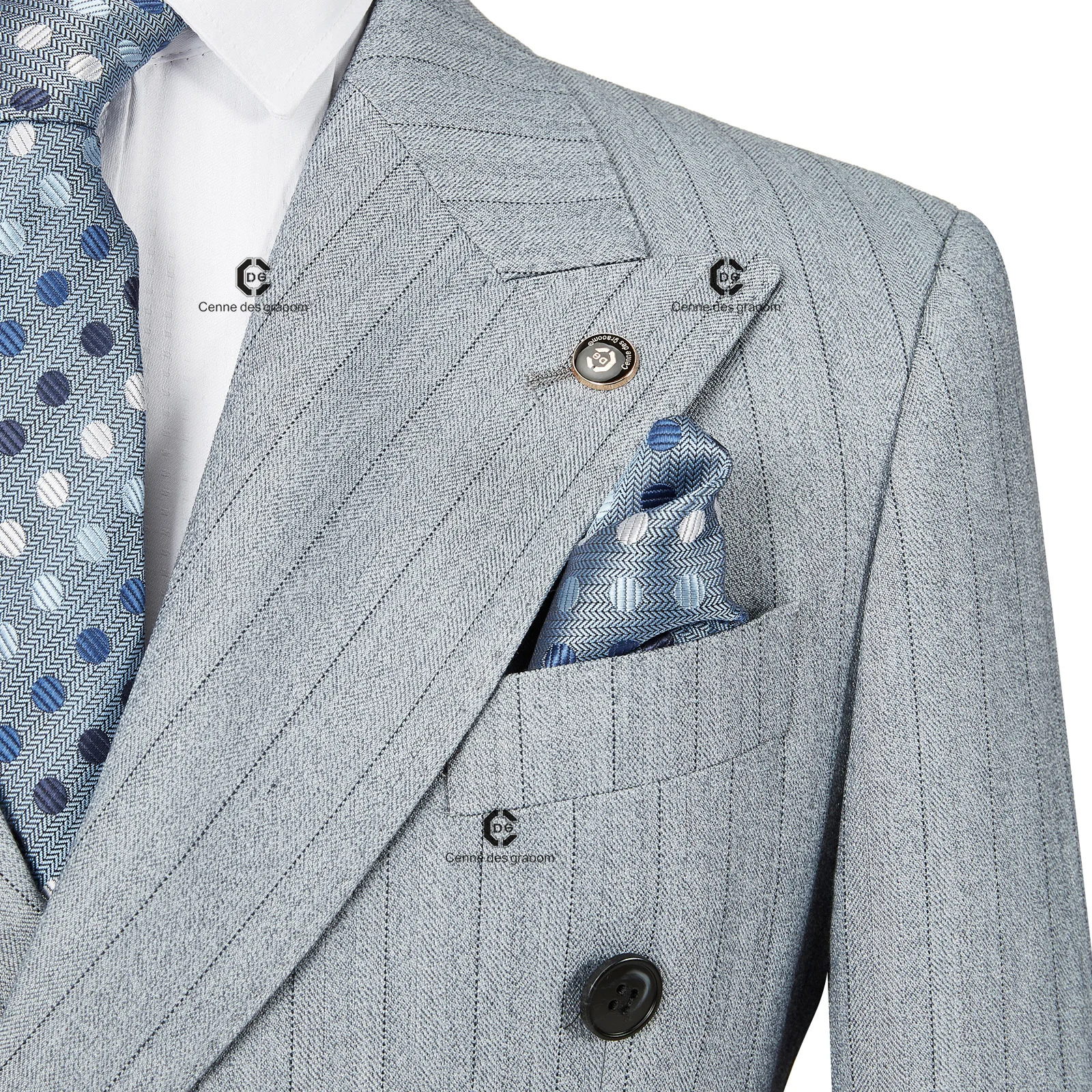 Cenne Des Graoom 2026 Blue Stripe Men Suits Double-Breasted Tailor-Made 2 Piece Set Jacket Pants Business Meeting Wedding Party
