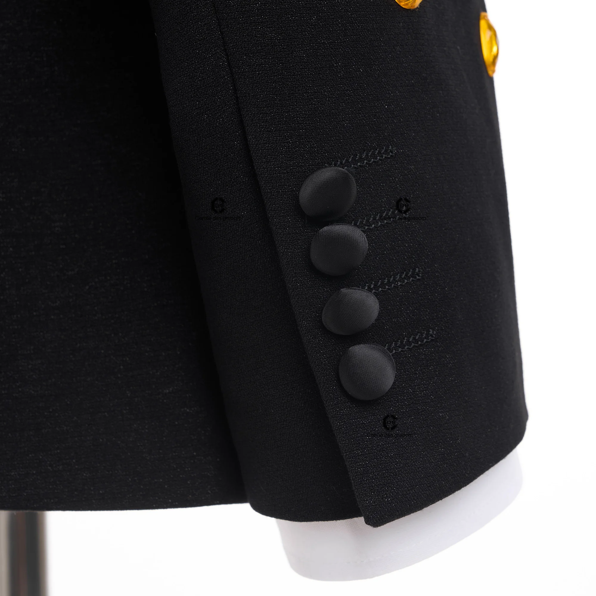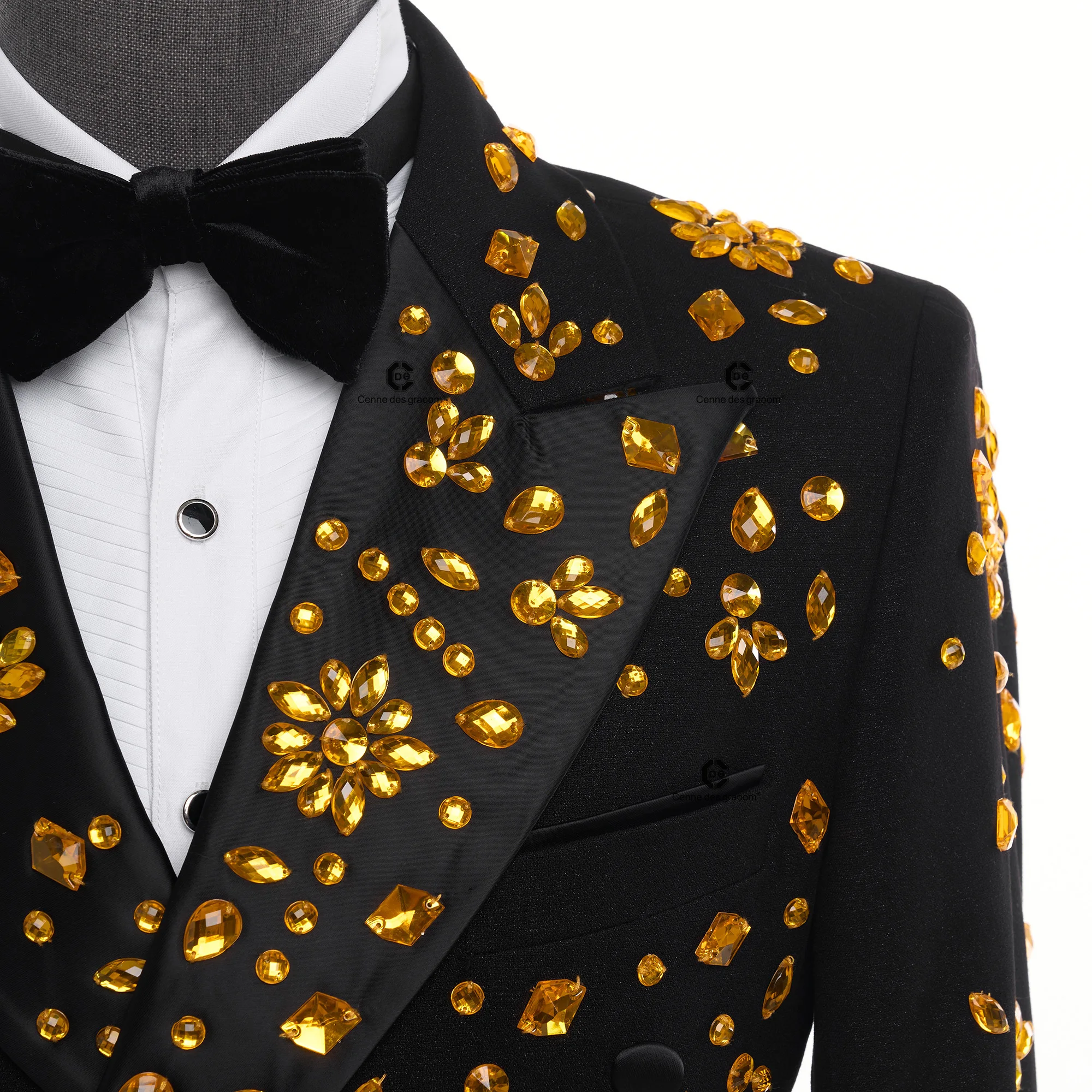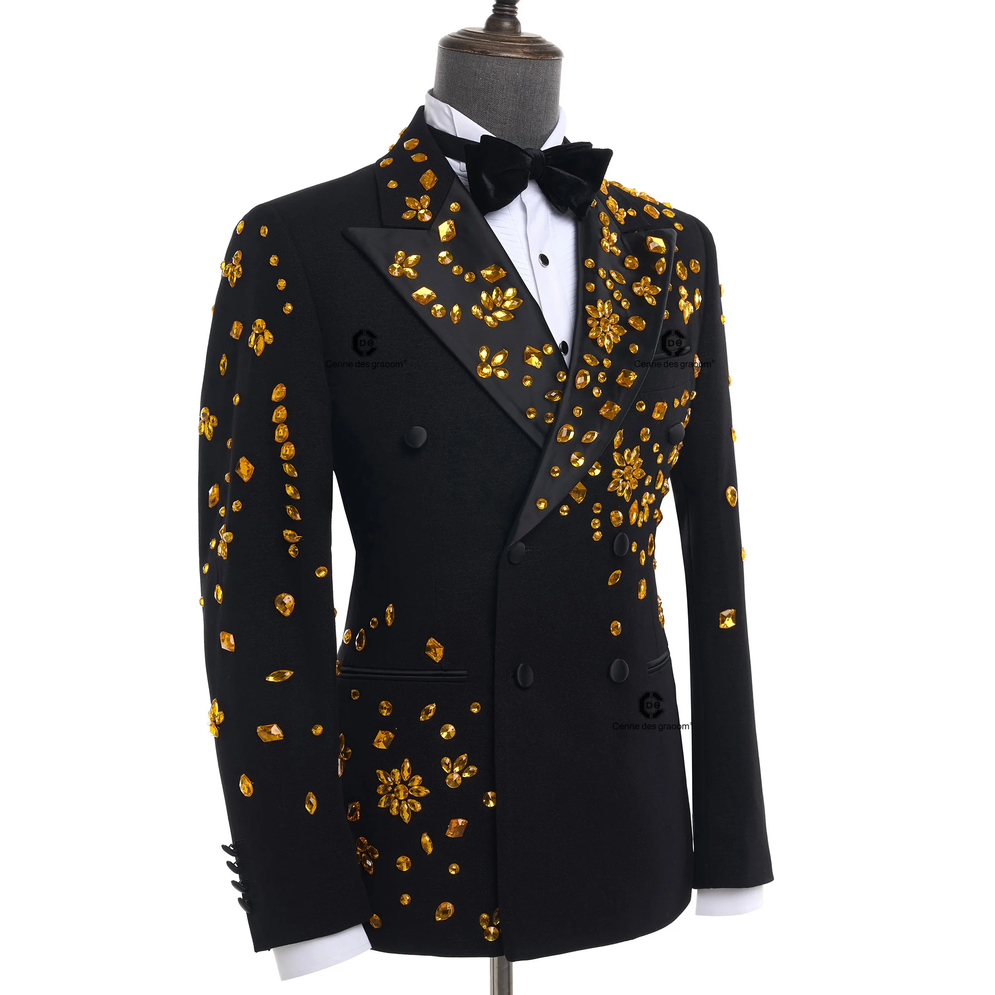 Cenne Des Graoom 2026 New Elegant Luxury Men Suits Black Gold Double-Breasted Jewelry Ornament Shining Tuxedo for Wedding Par