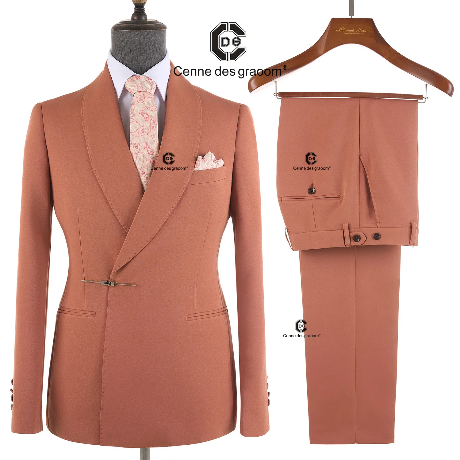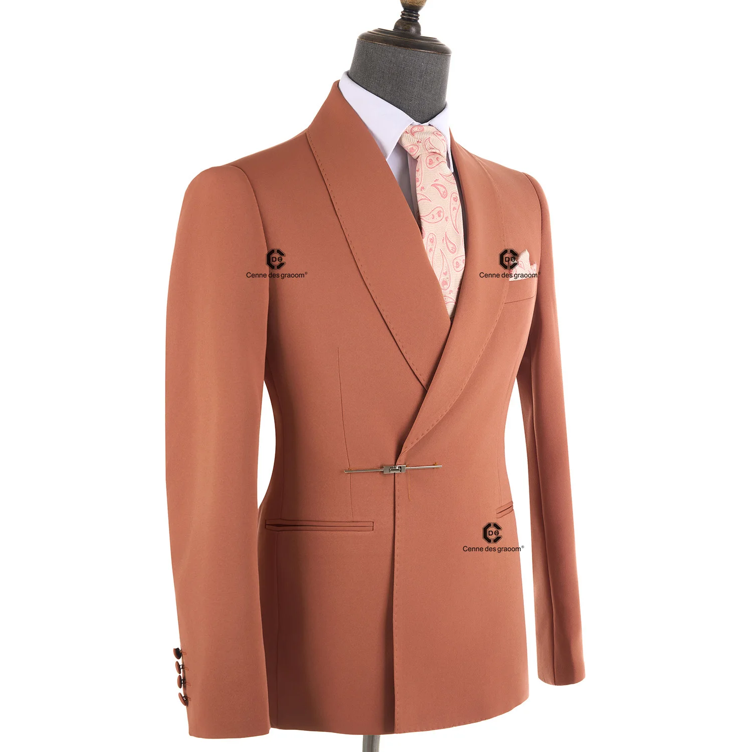 Cenne Des Graoom 2026 New Elegant Orange Men's Suits Metal Side Release Buckle 2 Pieces Set High Quality Wedding Party Dinner