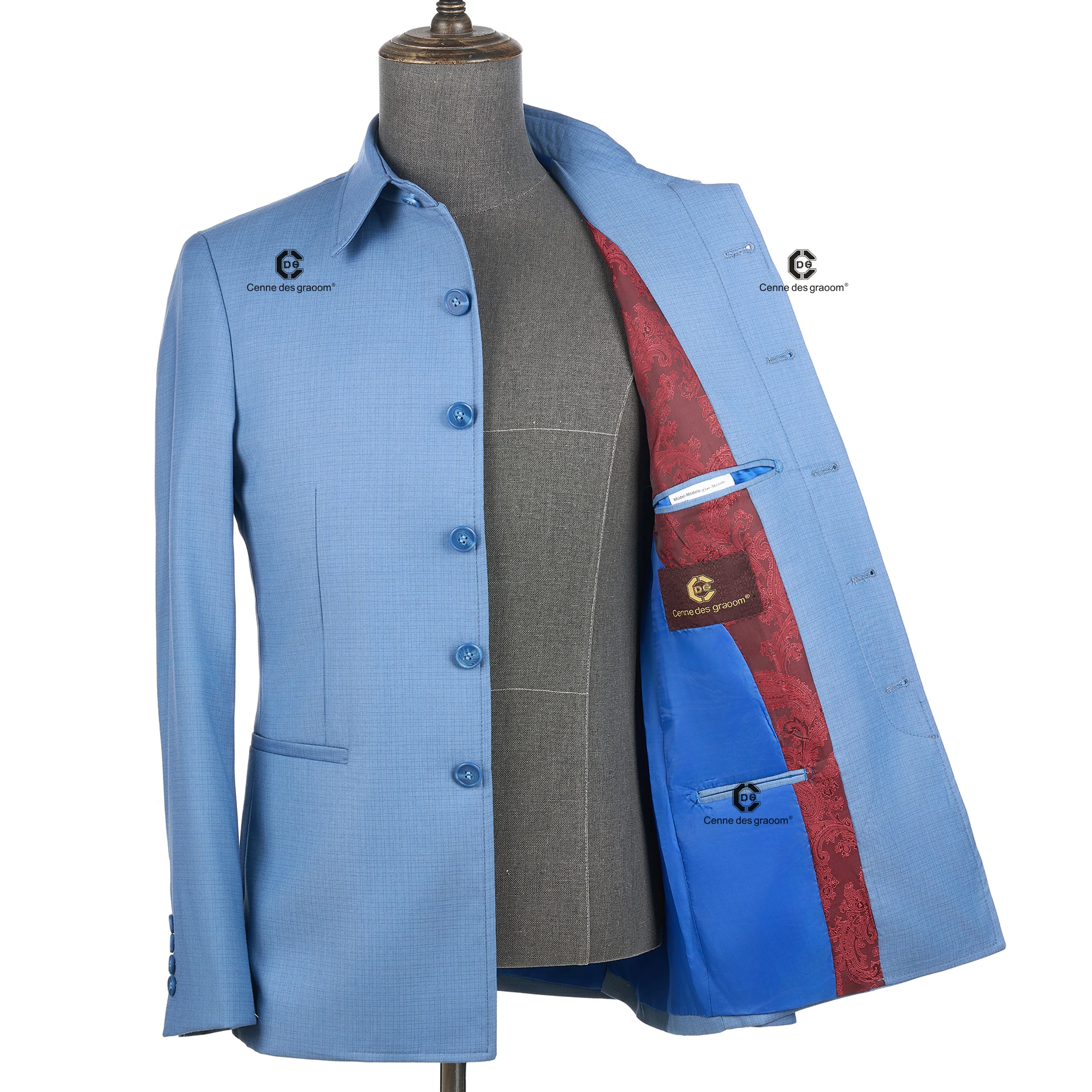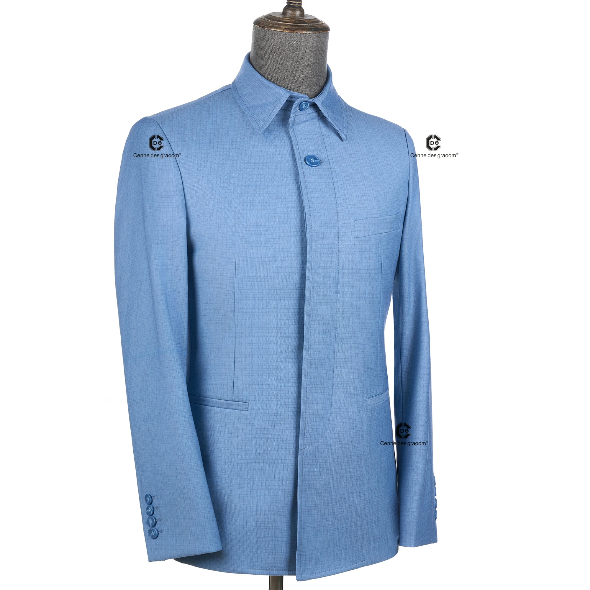 Cenne Des Graoom 2026 New Safari Men Suits Sky Blue Tailor-Made Formal Casual Business Official Daily Wear Costume Homme