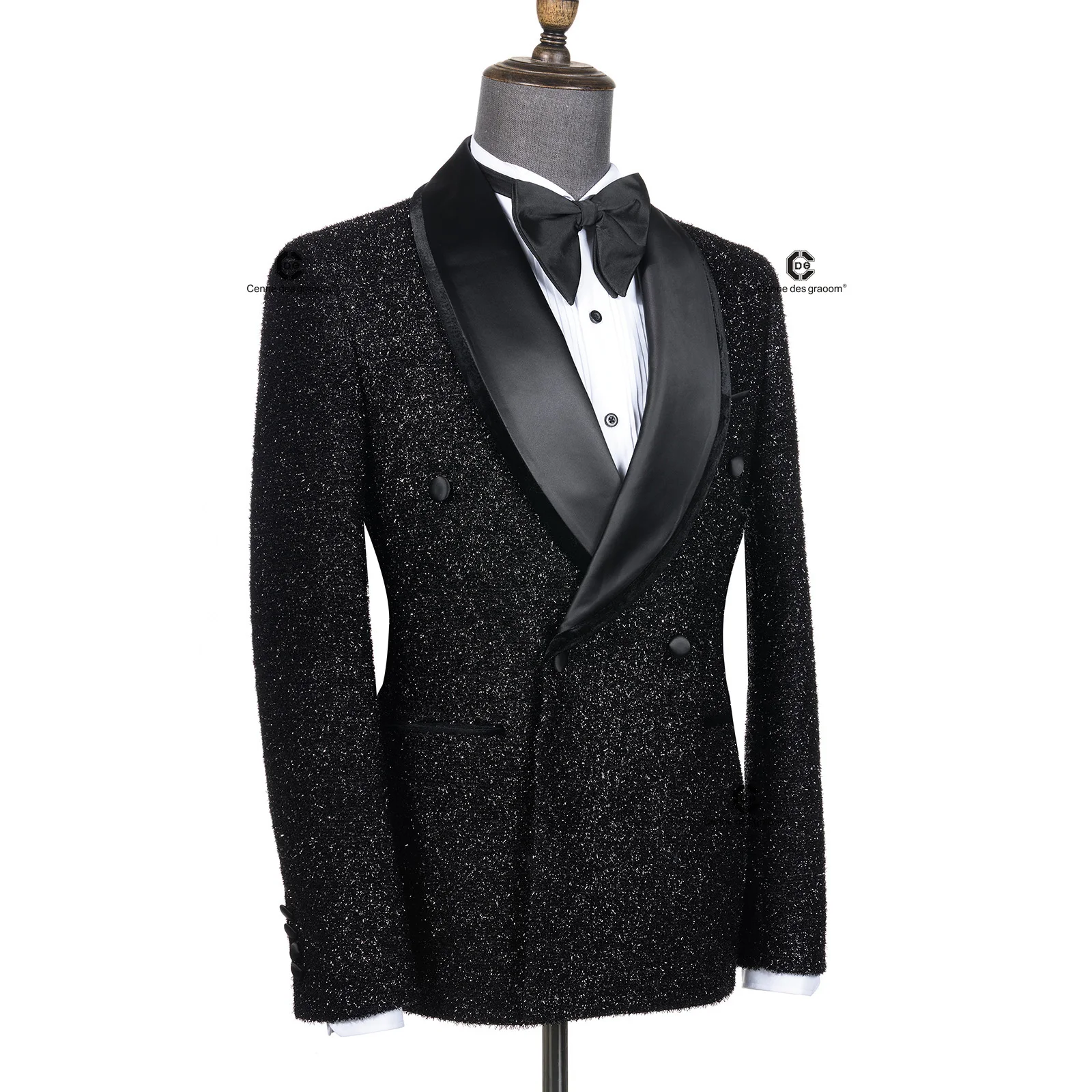 Autumn Winter Jacquard Fashion Design Single Button Suit Jacket for Men Lapel Tops Blazer Flat Front Model Sehe Fashionbisou