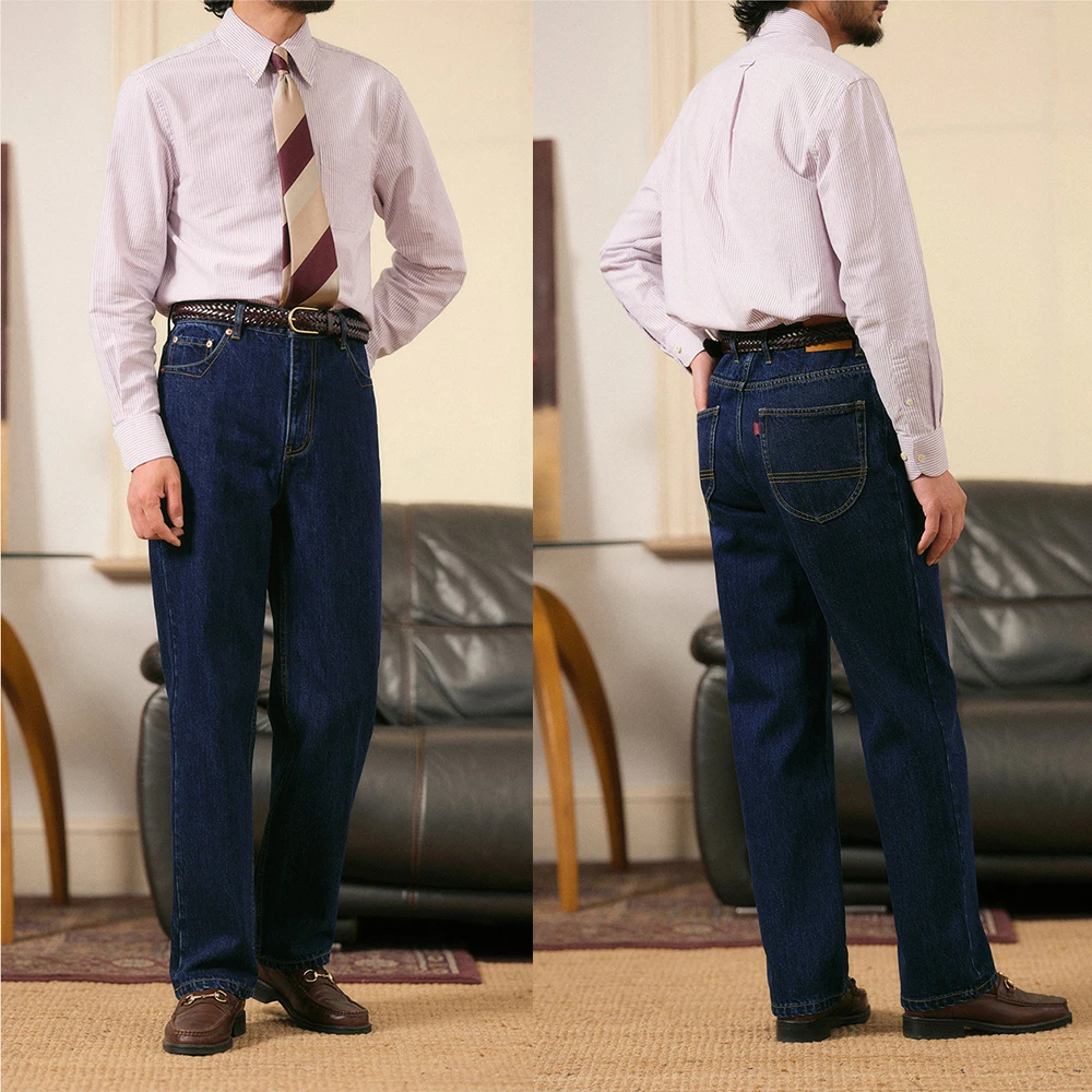 100% Cotton Washed Classic Straight Leg Jeans Casual Retro Solid Color Simple Pants for Men