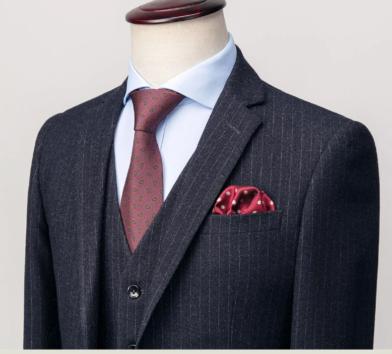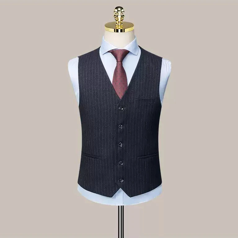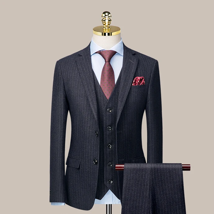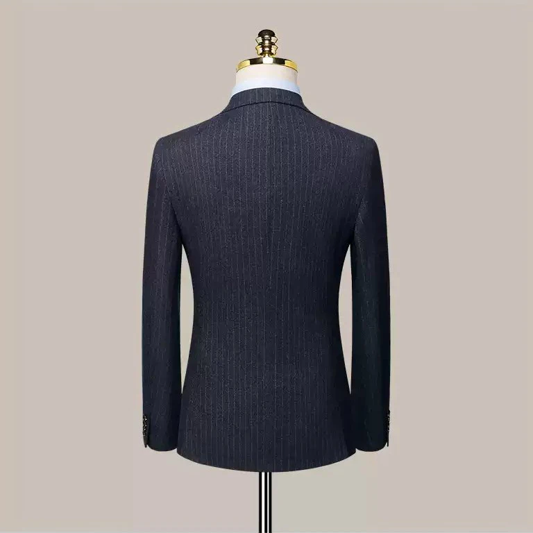 2026 New Men's 3 Pieces Dark Grey Striped Slim Business Notch Lapel High Quality Casual Single Breasted Double Vents Suit Set
