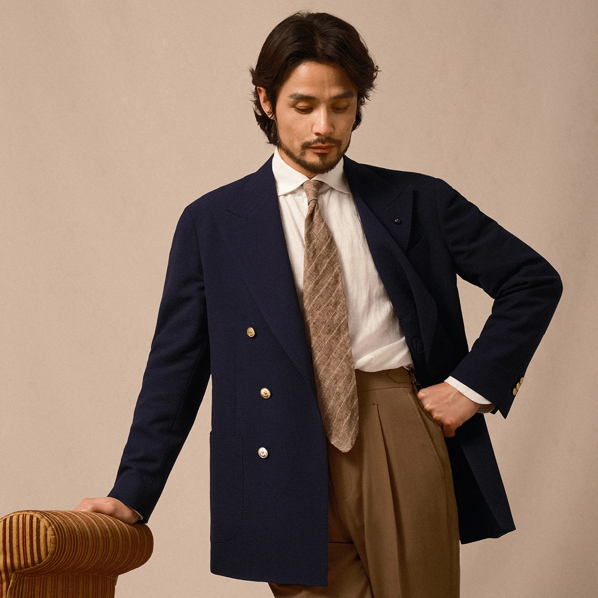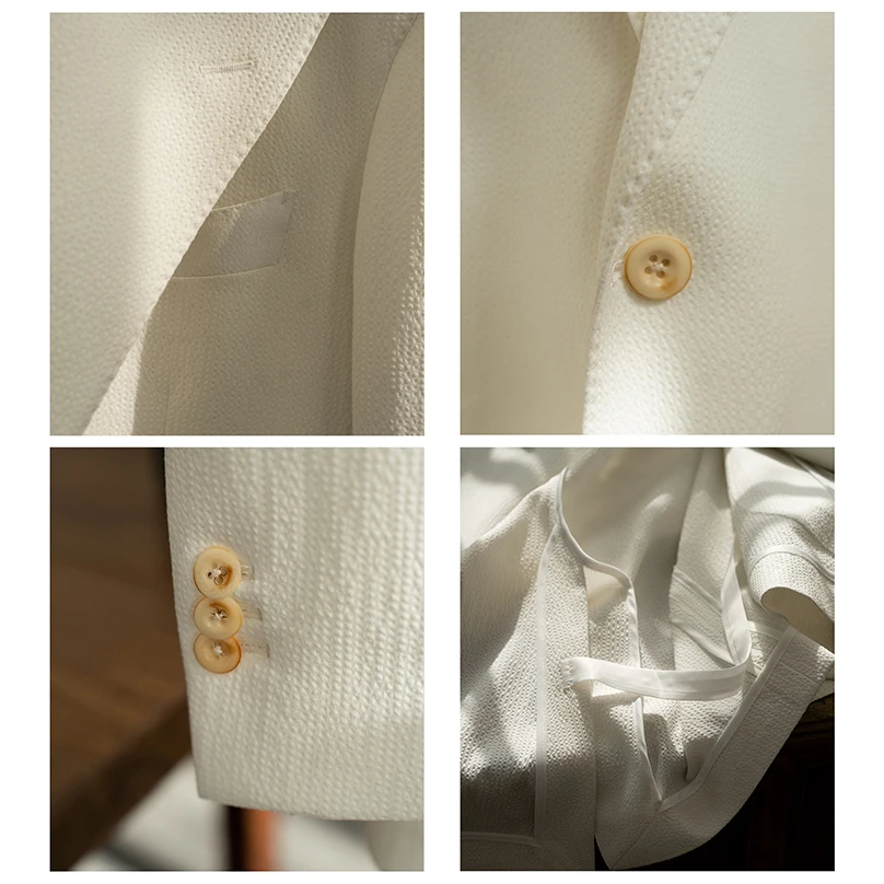 Spring/Summer Men's Breathable Seersucker Half Lined Non Ironing Double Breasted Suit Casual Suit Set for Men