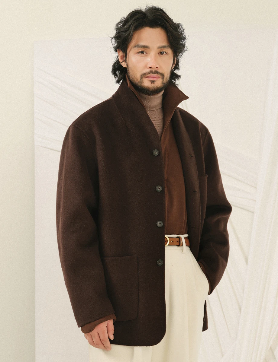Double Sided 100% Pure Australian Wool Unisex Single Breasted Coat Autumn/winter Thick 850g Heavy Hand Sewn Short Coat Jacket