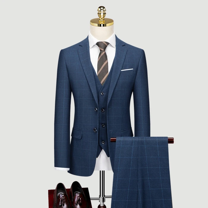 2026 New Men's Plaid 3 Pieces Slim Business Single Breasted Notch Lapel Center Vent High Quality Suit Set for Men