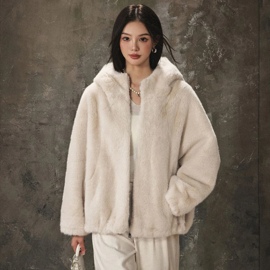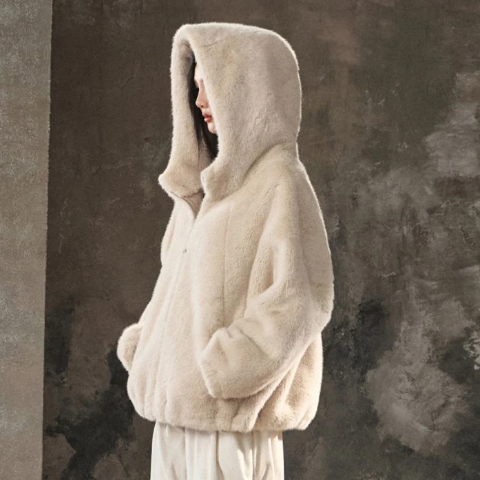 Autumn/Winter New Inspired Warm Women's Coat Lantern Sleeve Loose Hooded Eco-friendly Fur Women