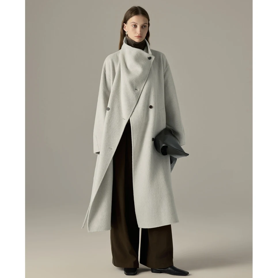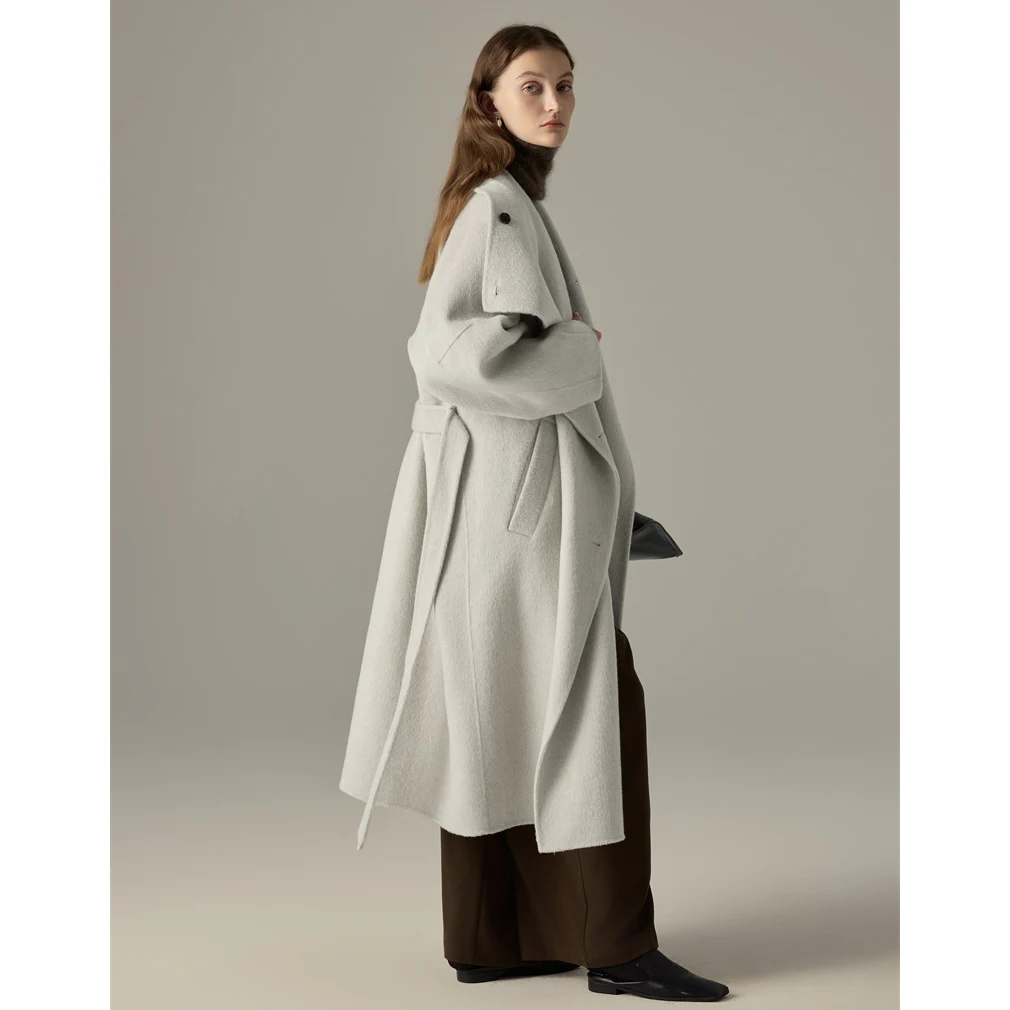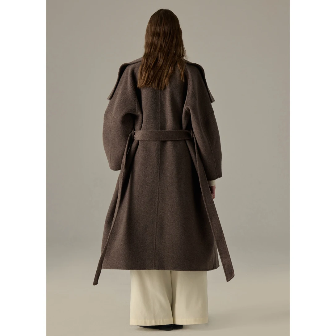 Casual Collar Double-sided Cashmere Coat for Women Autumn and Winter New High-end Shoulder Length Woolen Coat