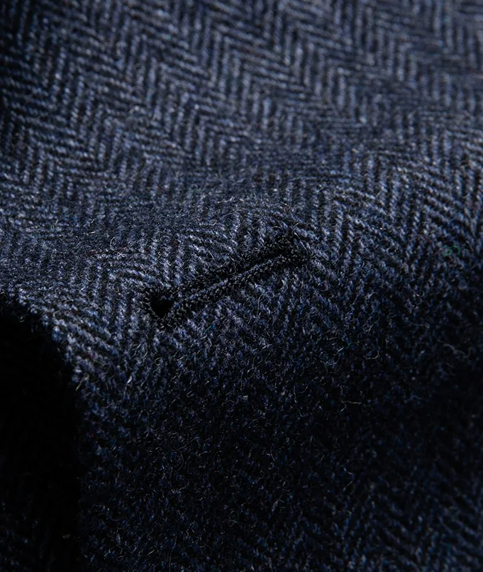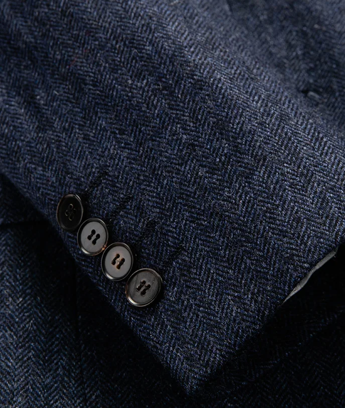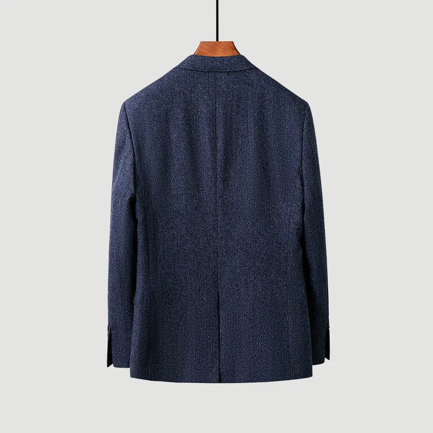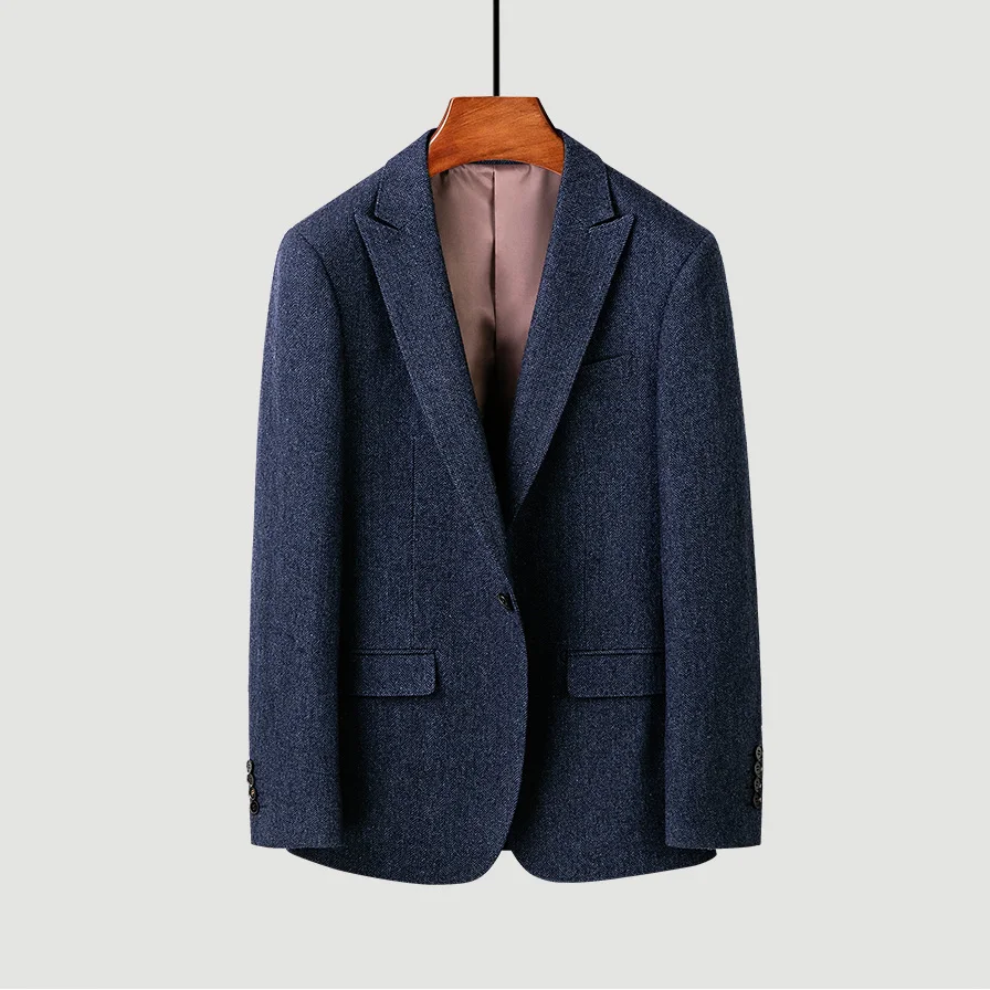 2026 New Men's 50% Wool Navy Blue Herringbone Slim Business Single Breasted High Quality Suit Jacket for Men