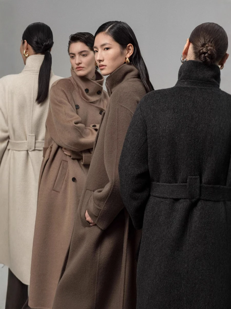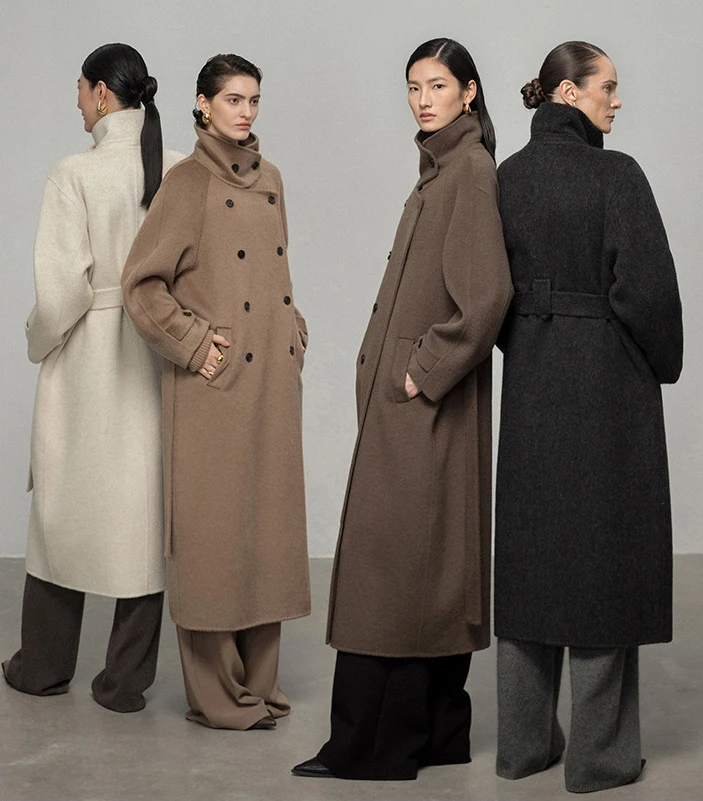 Winter New High-end Standing Collar Long Double-sided Woolen Coat Women's Double Breasted Straight Tube Coat With Waist Belt