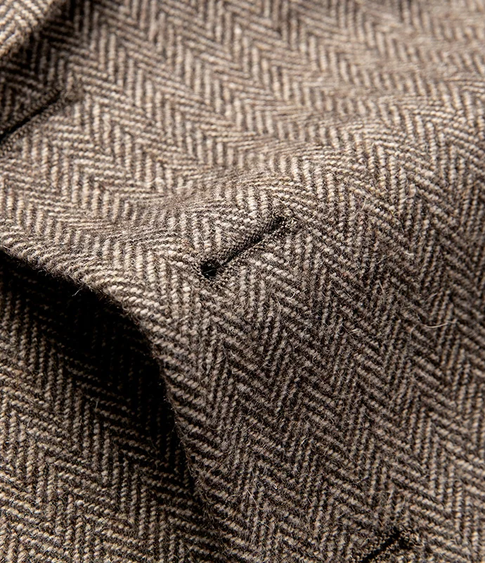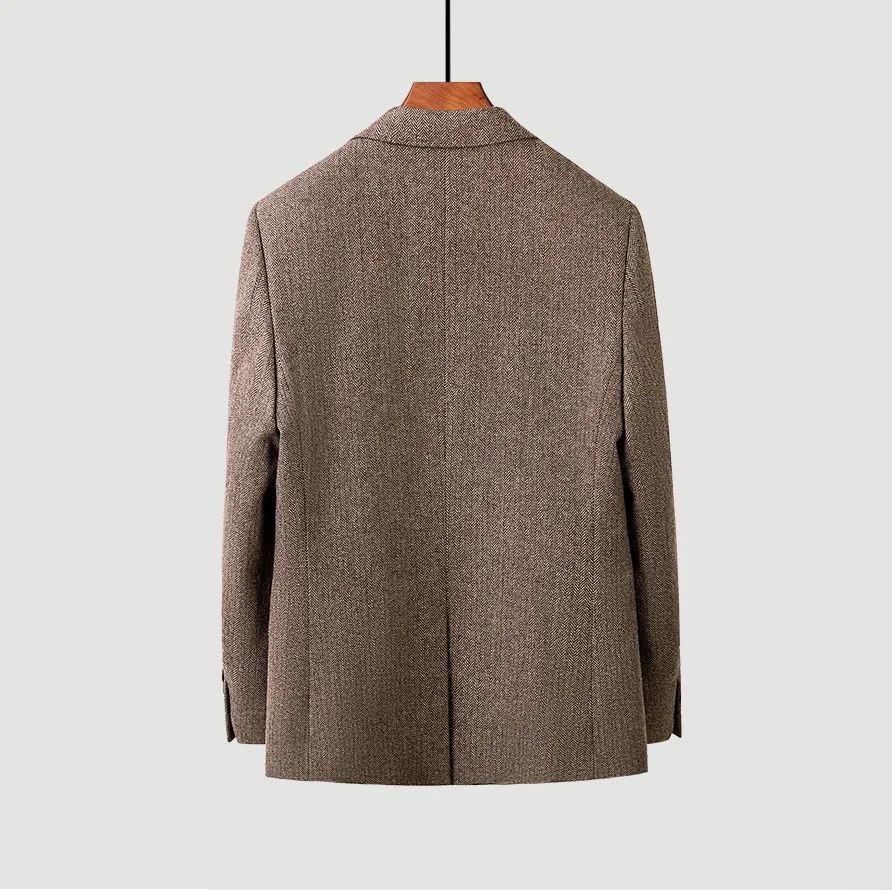 2026 New Men's Brown Herringbone Slim Business Peaked Lapel Single Breasted Center Vent High Quality Suit Jacket for Men