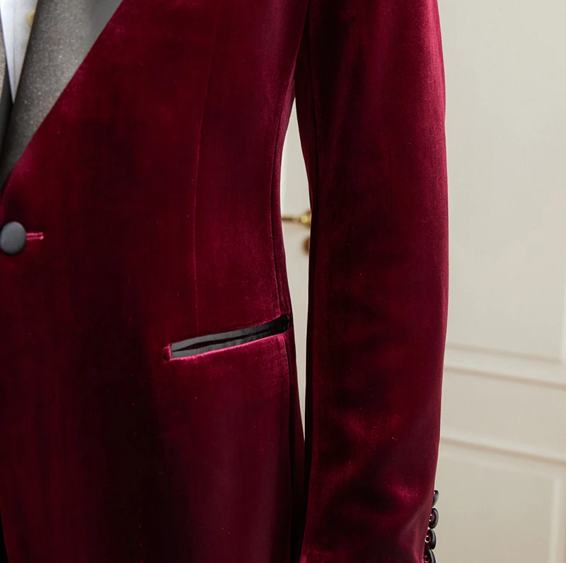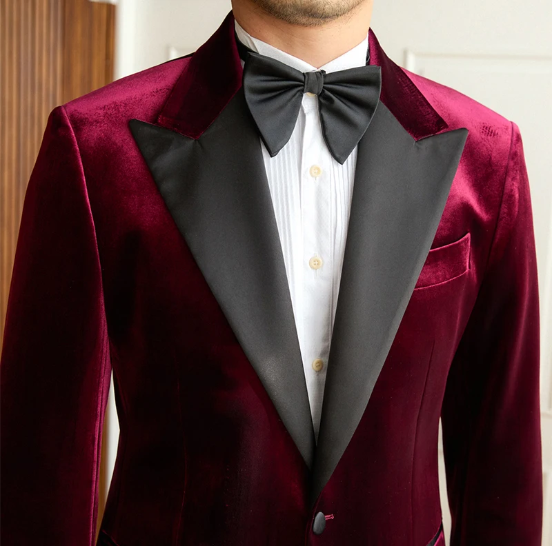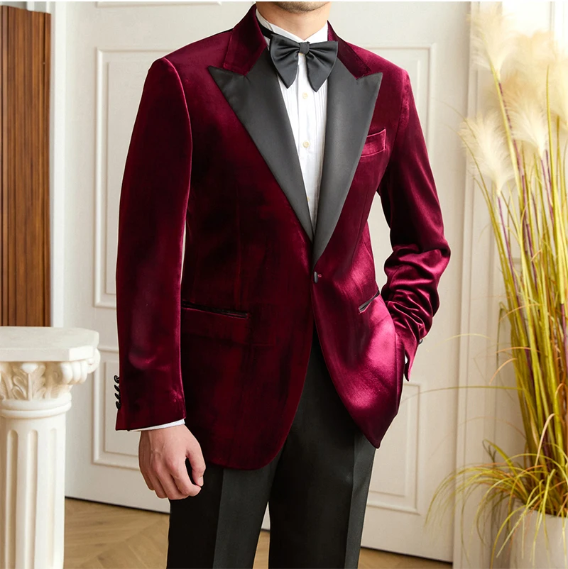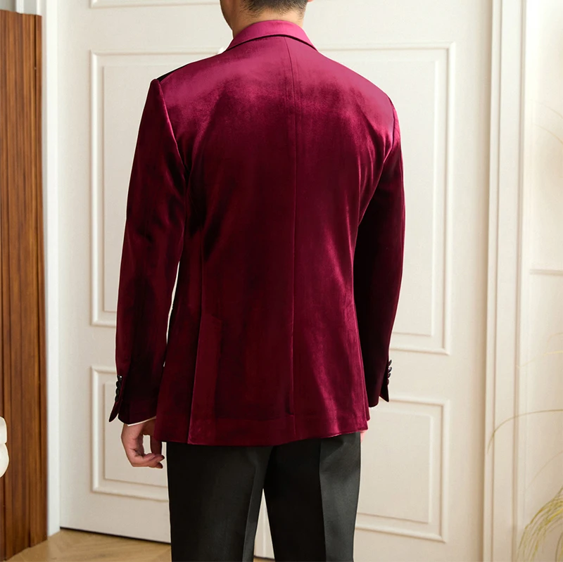 2026 New Men's Banquet Groom Wedding Velvet Suit Jacket Slim High Quality Double Slit Men's Suit Jacket