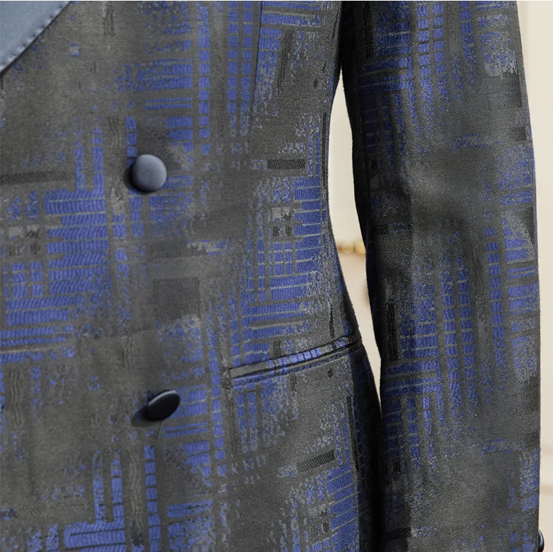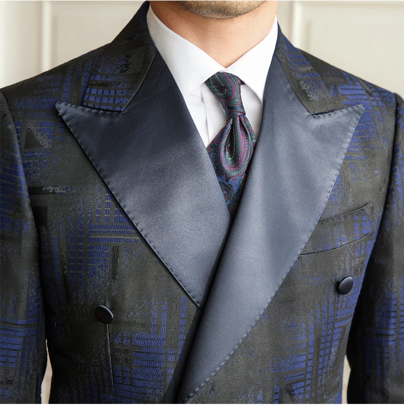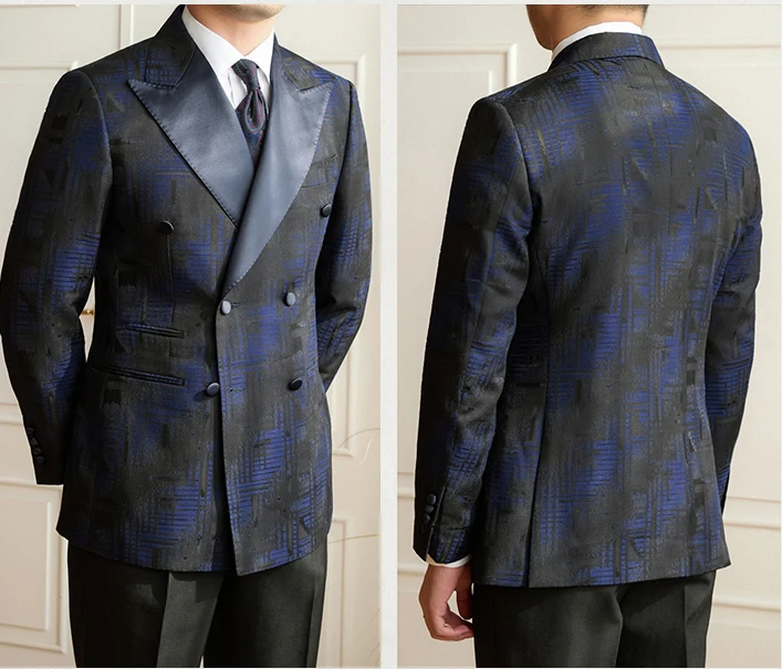 Men's Plaid Banquet Groom Wedding Handsome Suit Jacket Slim Peaked Lapel High Quality Double Vents Suit Jacket for Men