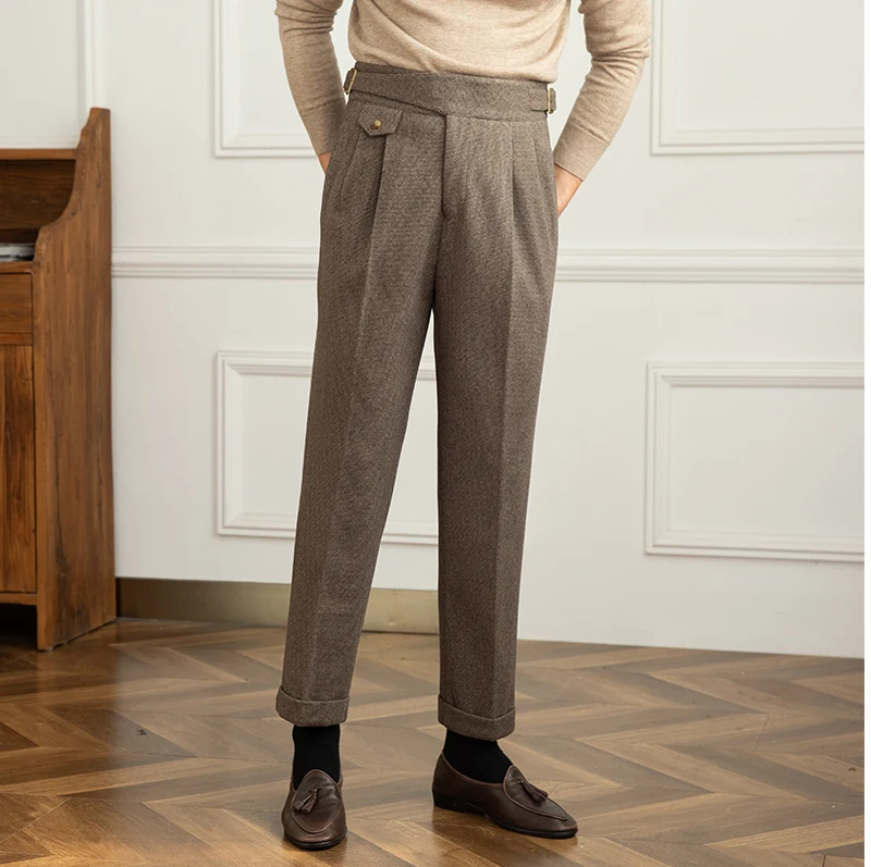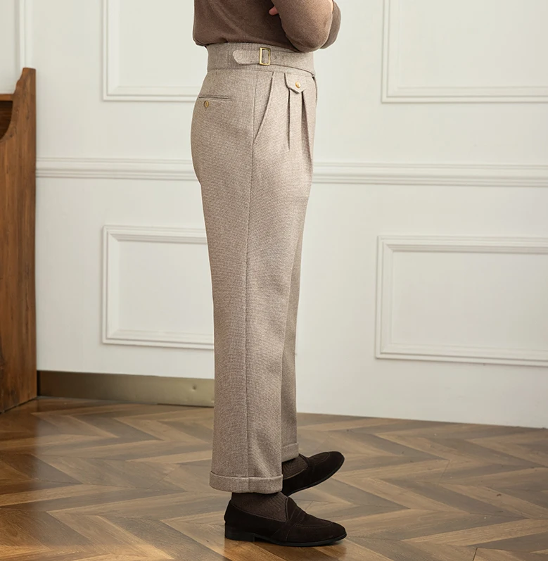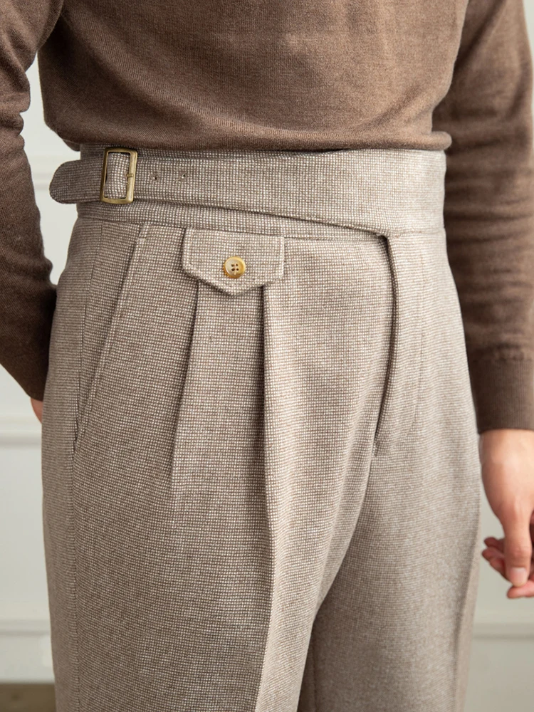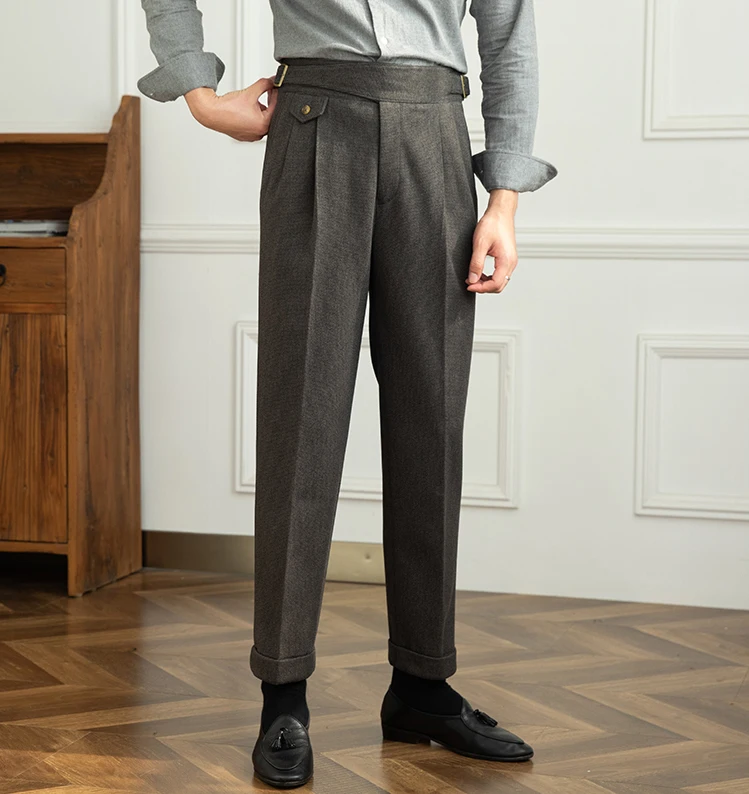Autumn Men's Solid Color Casual Italian Naples Paris Button Suit Pants Gentlemen High Waisted Draped Suit Pants for Men