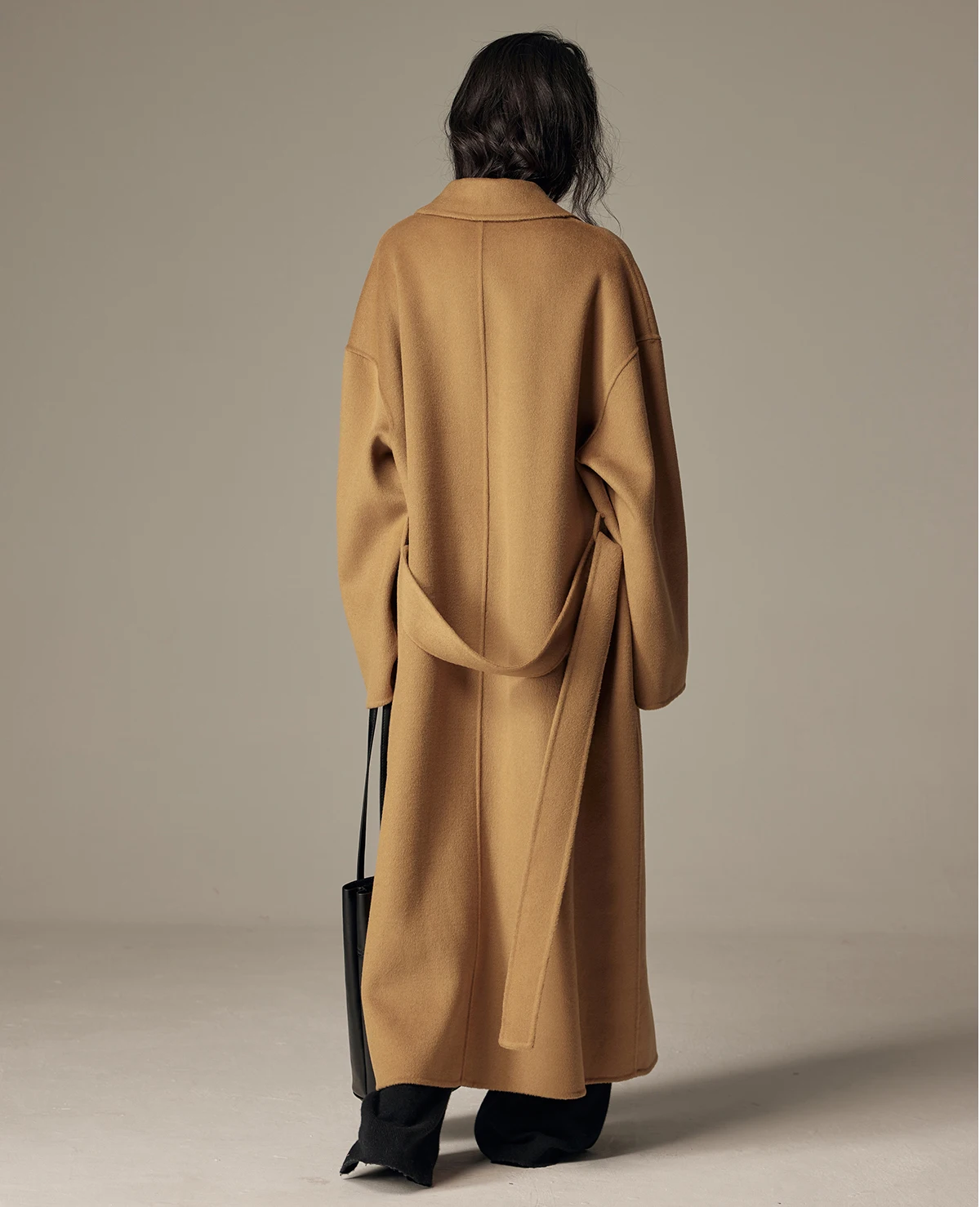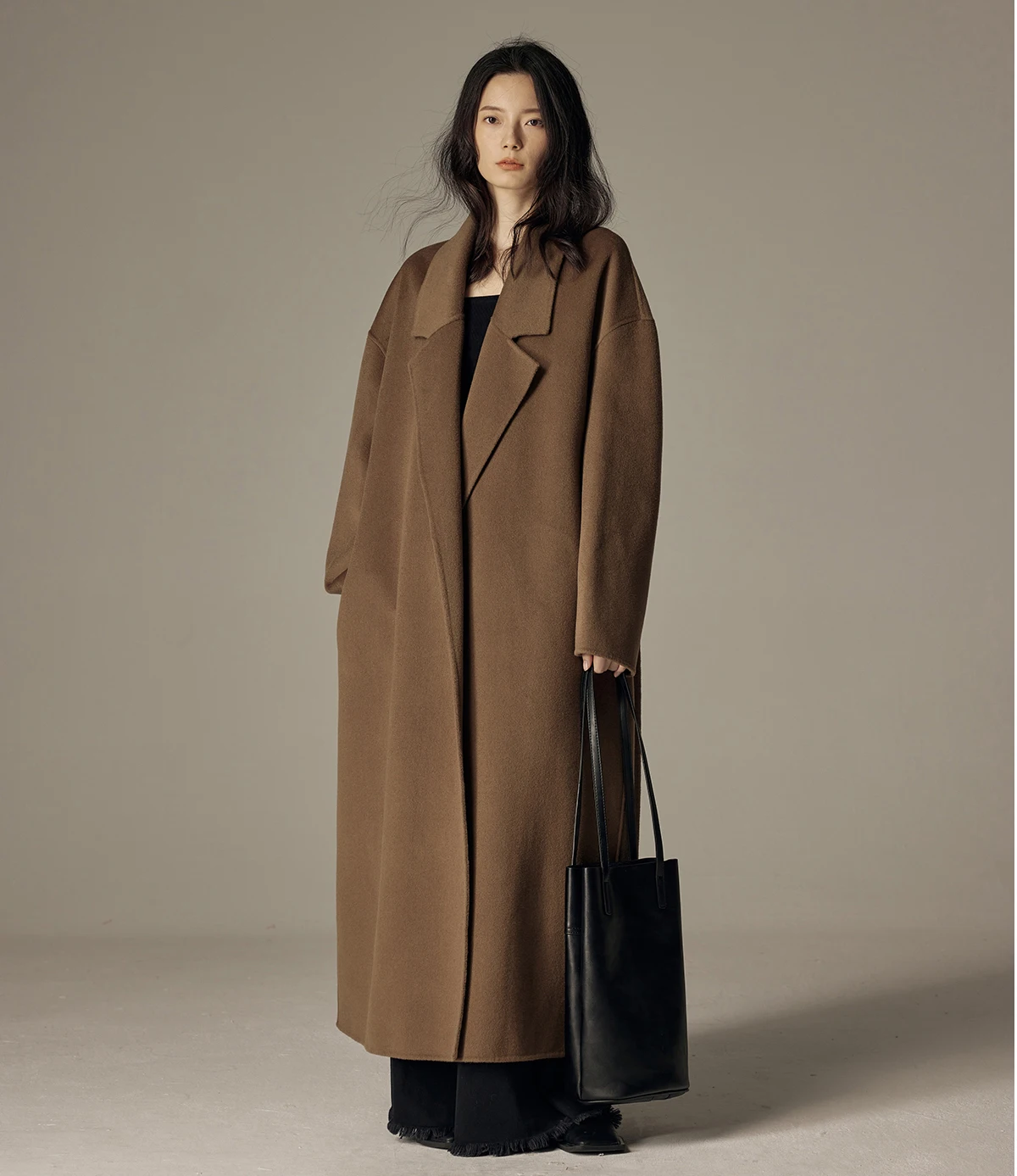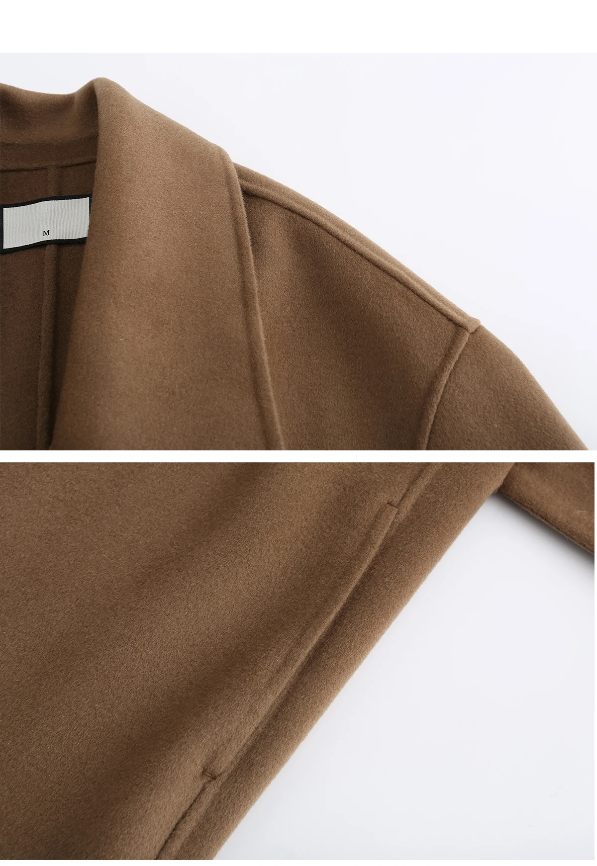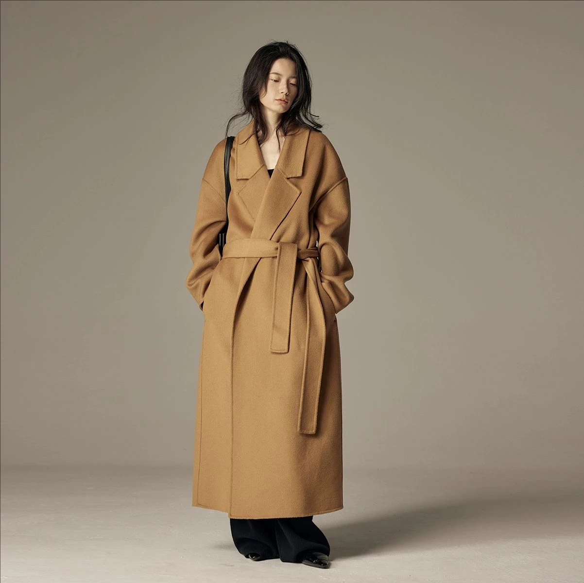 High Count 100% Wool Double-sided Woolen Coat for Women Winter Simple and Loose Drop Shoe ultra Long Over the Knee Woolen Coat