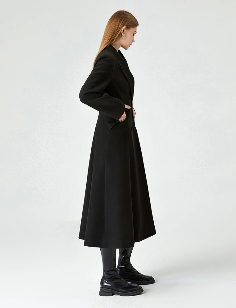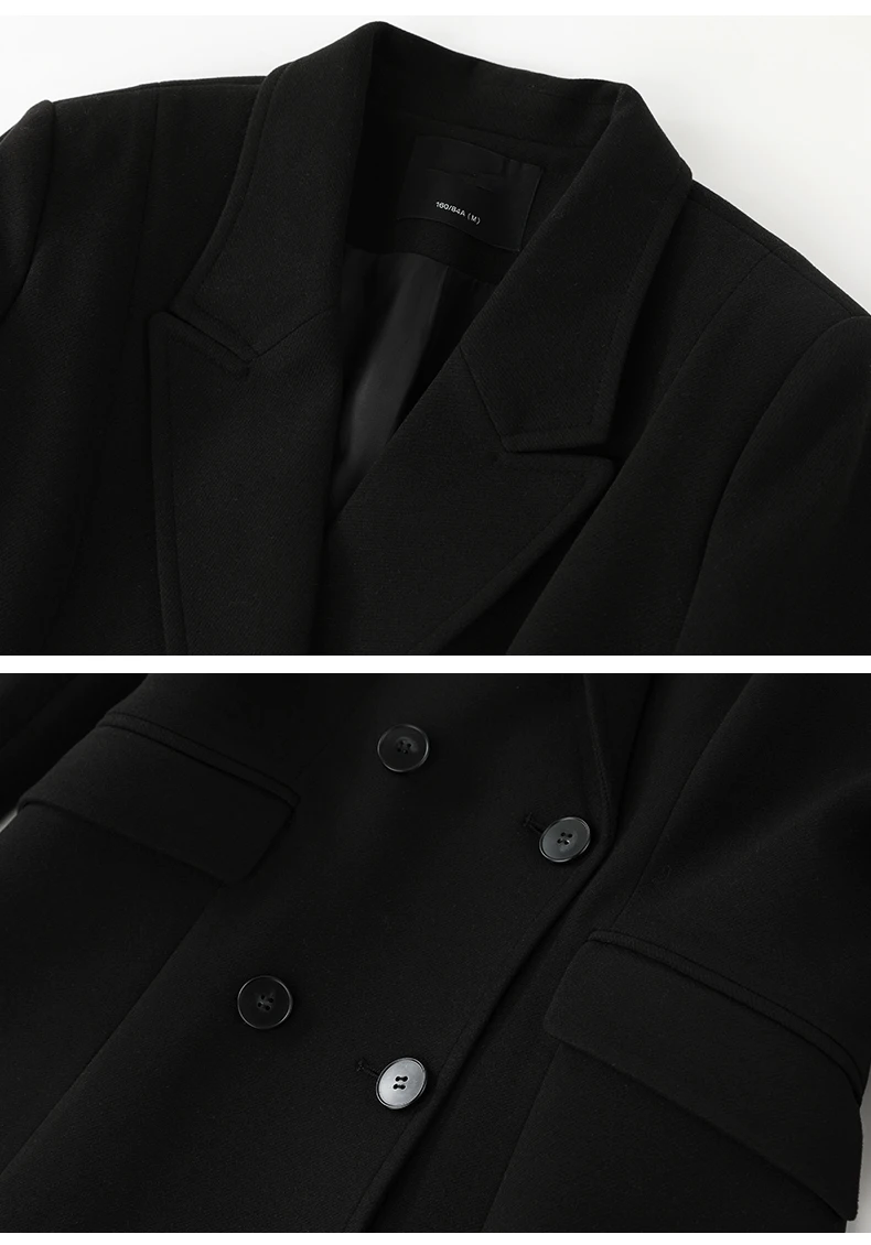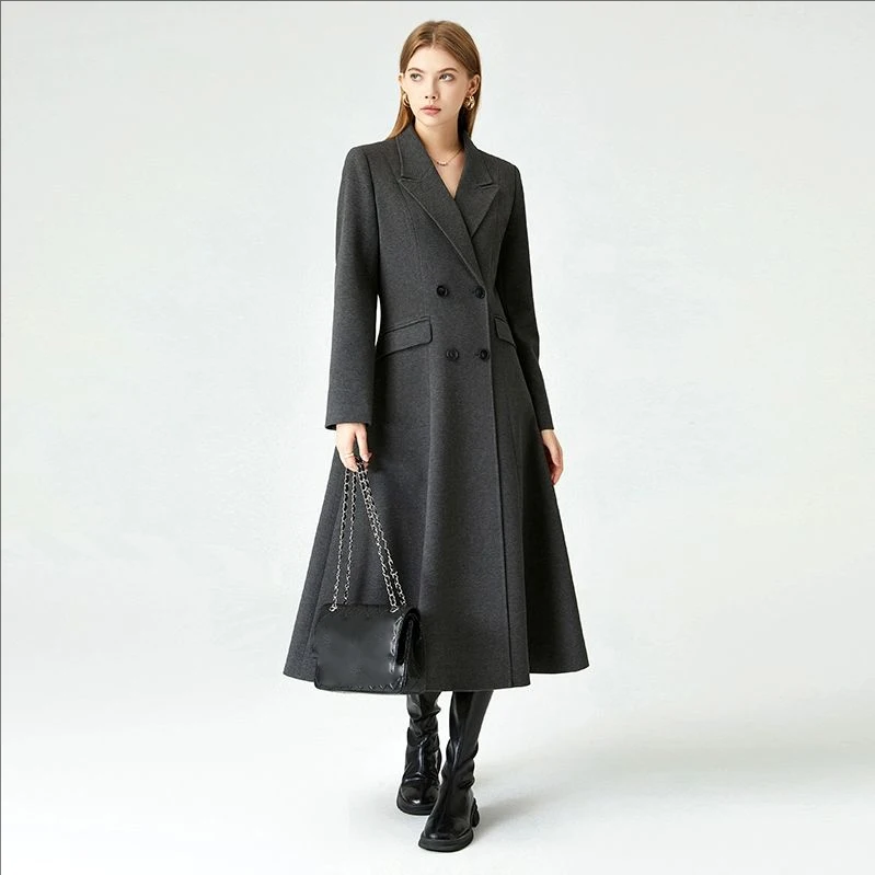 British Style Suit Style Woolen Coat for Women Autumn and Winter Waist Slimming Double Breasted Long Woolen Coat