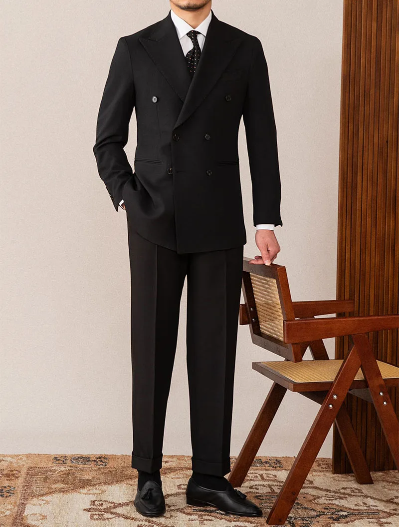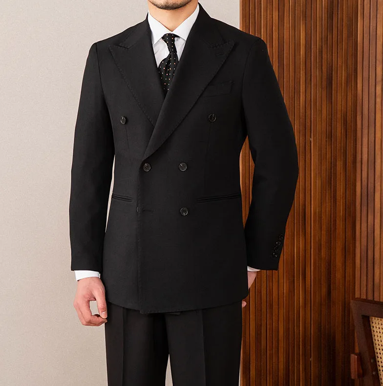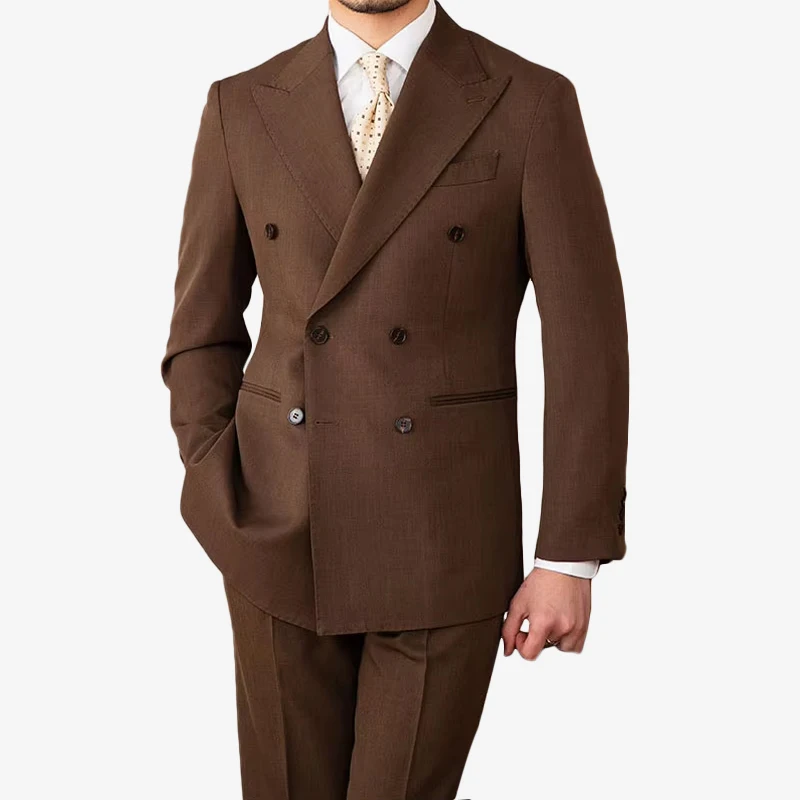 Men's Formal Slim Wedding Groom 2 Pieces Suit Set Business Peaked Lapel High Quality Double Vents Suit Set for Men