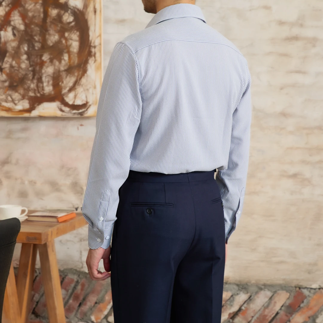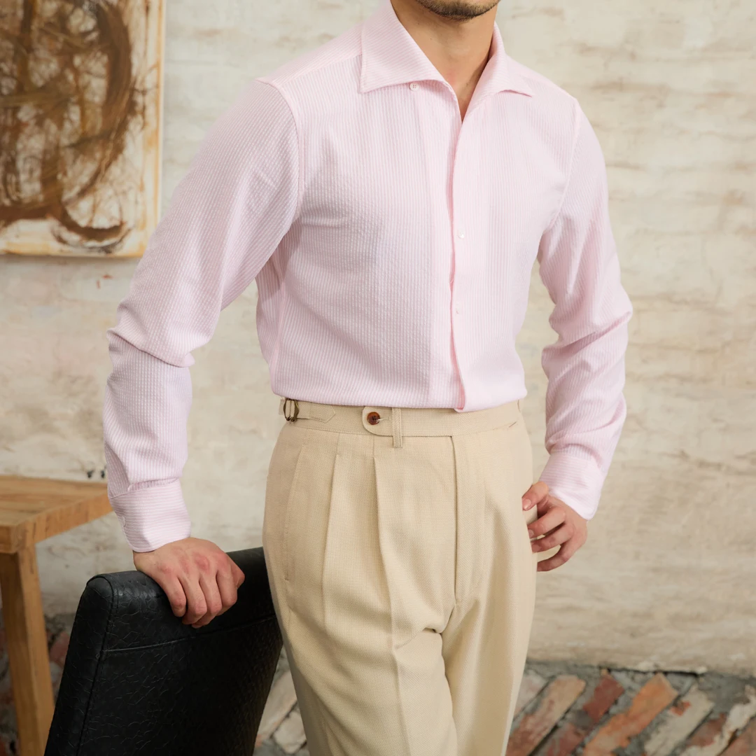 Spring Men's Striped Seersucker One Piece Collar Draped Non Iron Casual Shirts Long Sleeve High Quality Shirt for Men