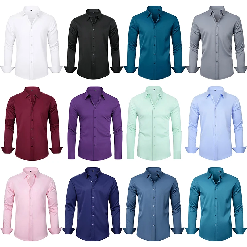 Custom Classic Solid Men Shirts Long Sleeve Formal Office Dress Shirts White Turn-down Collar Work Shirts Camisas Para Hombres