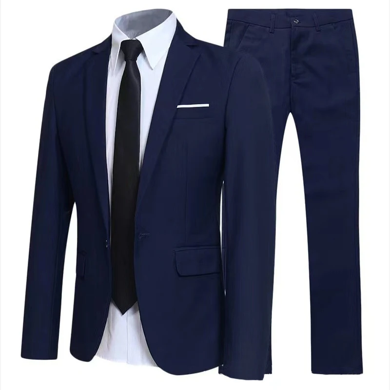 Two Piece Formal Business Men's Suit Slim Fit Single Button Solid Color Suit for Men