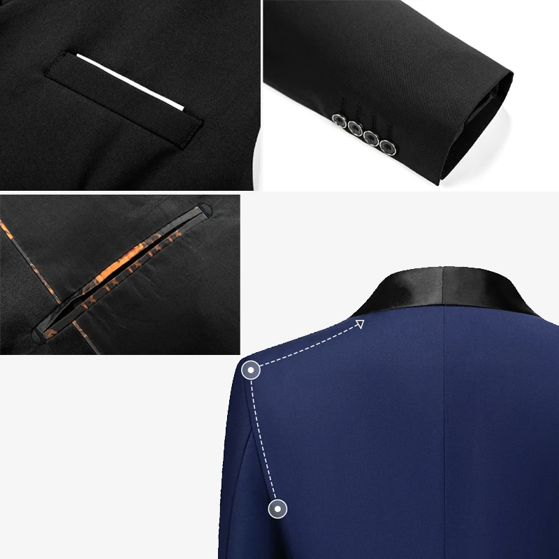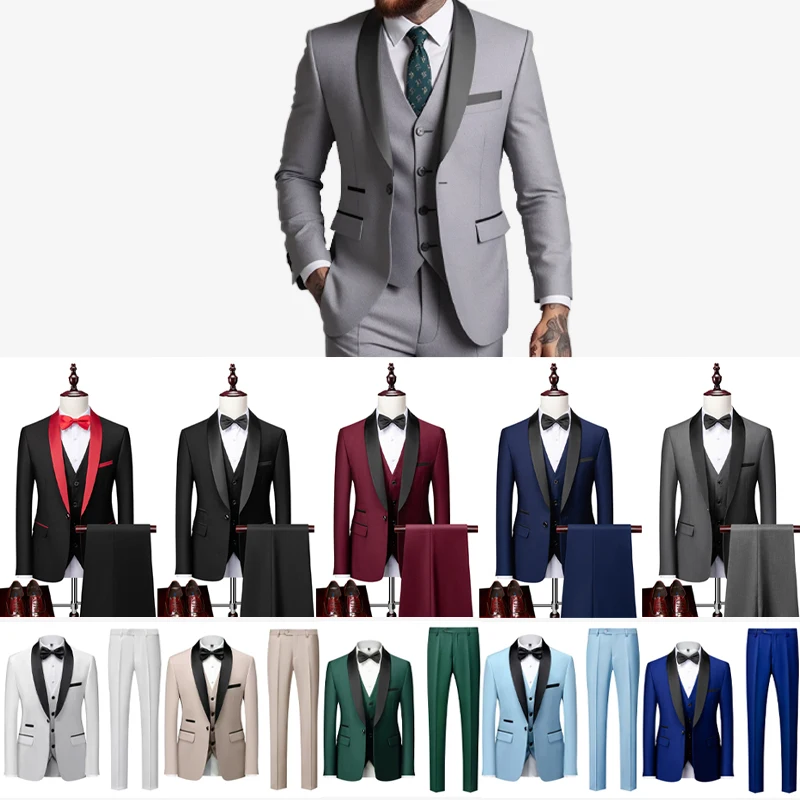 Slim Fit Shawl Collar Men's Suit Single Button Three-Piece Groom Wedding Dress Suit for Men