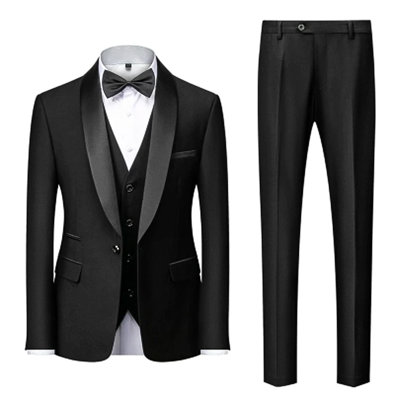 Groom's Suit Set 3 Pieces Suit Jacket Vest Pants Solid Slim Fit Men's Suits Blend Wedding Suit for Men