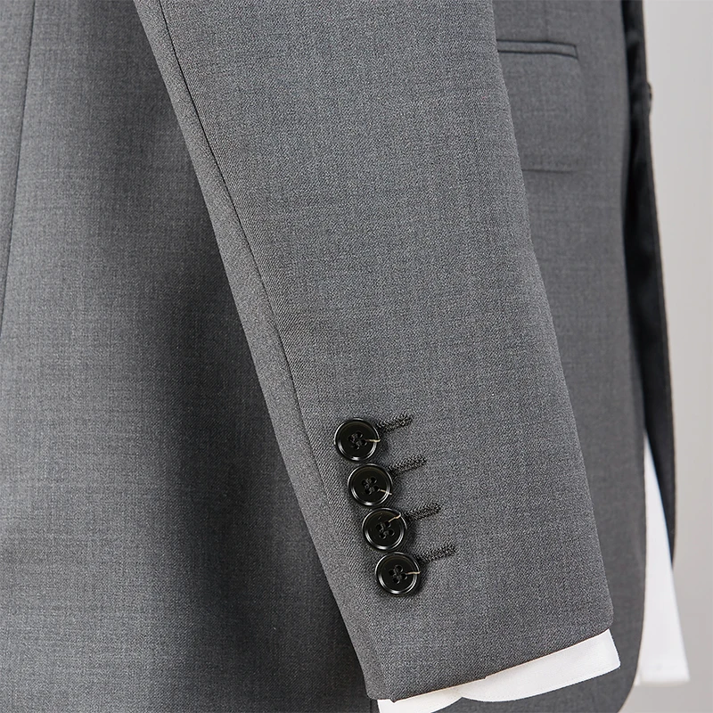 Men's Gray Breathable Two-Piece Suit with Stand Collar Straight Leg Pants for Adult Business Occasions (Model HY7075-1)
