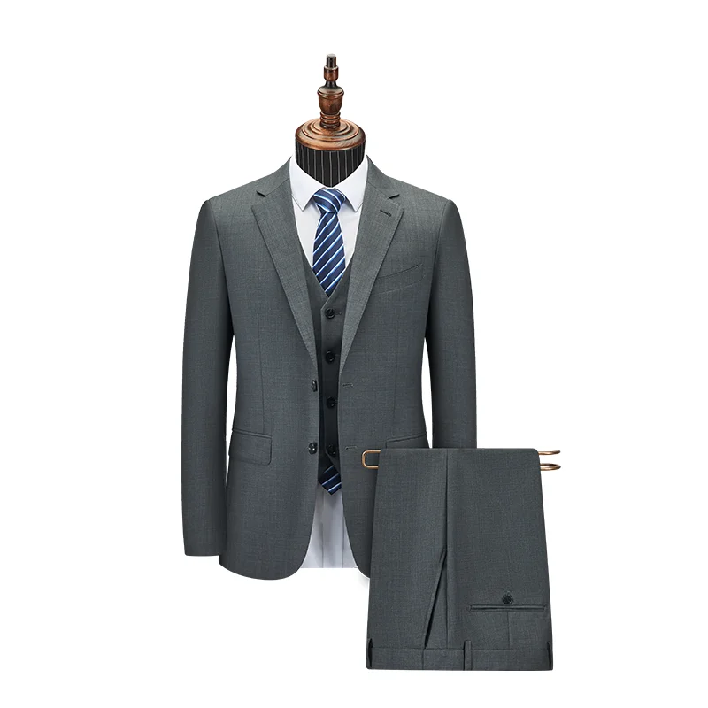 Gray Men's Professional Single-Breasted Business Suit Top Pants with Flat Front Style Factory Wholesale OEM & ODM Orders 8092-1