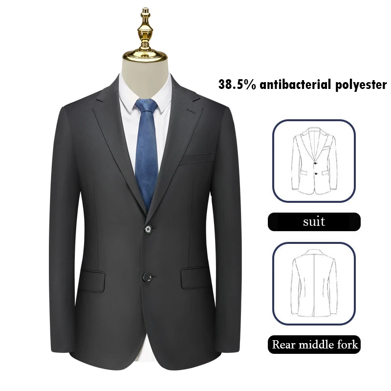 38.5% Antimicrobial Polyester Black Men's Suit Suit Tops Plus Pants Career HK2051-1