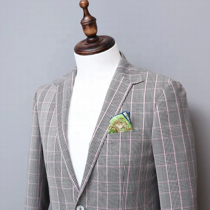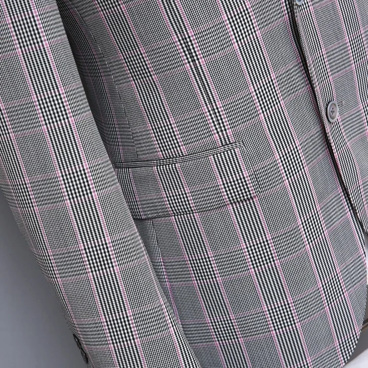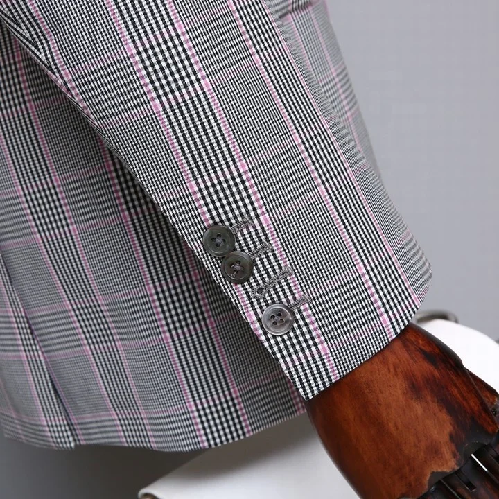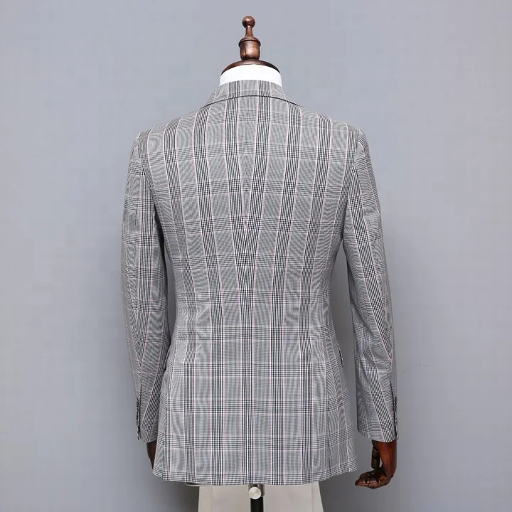 High-End Bespoke Men's Plaid Grey Woolen Suit Custom Single Breasted Model Anti-Wrinkle Anti-Shrink Zipper Fly Flat Front Style