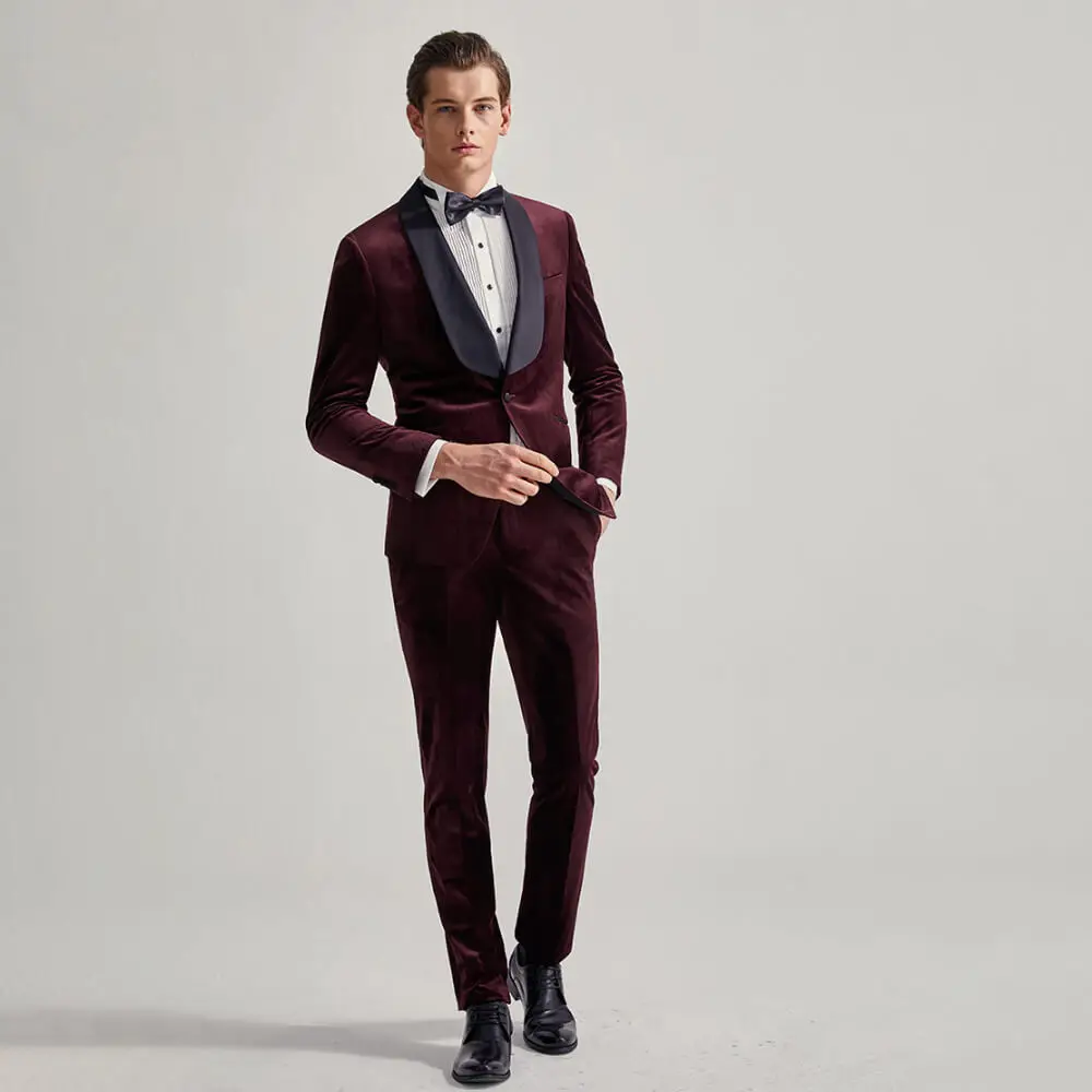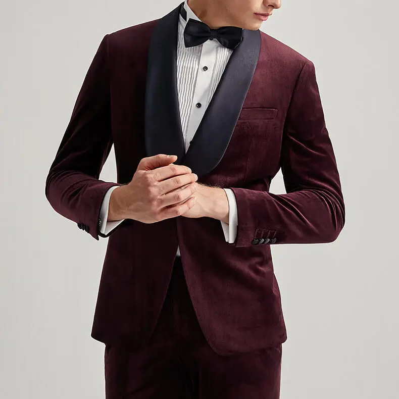 Factory-Accepted Single Breasted Tuxedo for Men 2-Piece French Wedding Pants Suits Corduroy Fabric Anti-Static Ready-Made