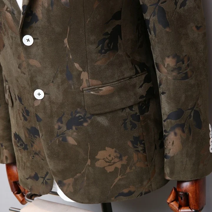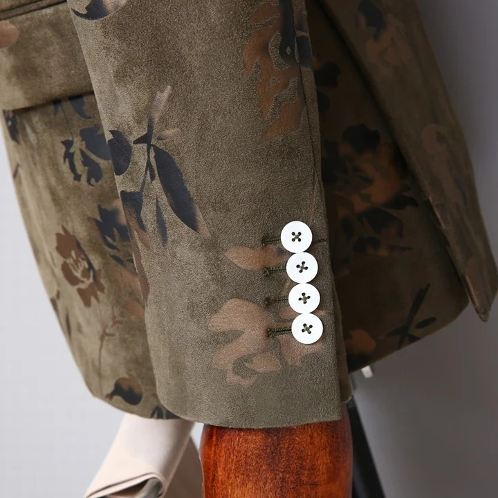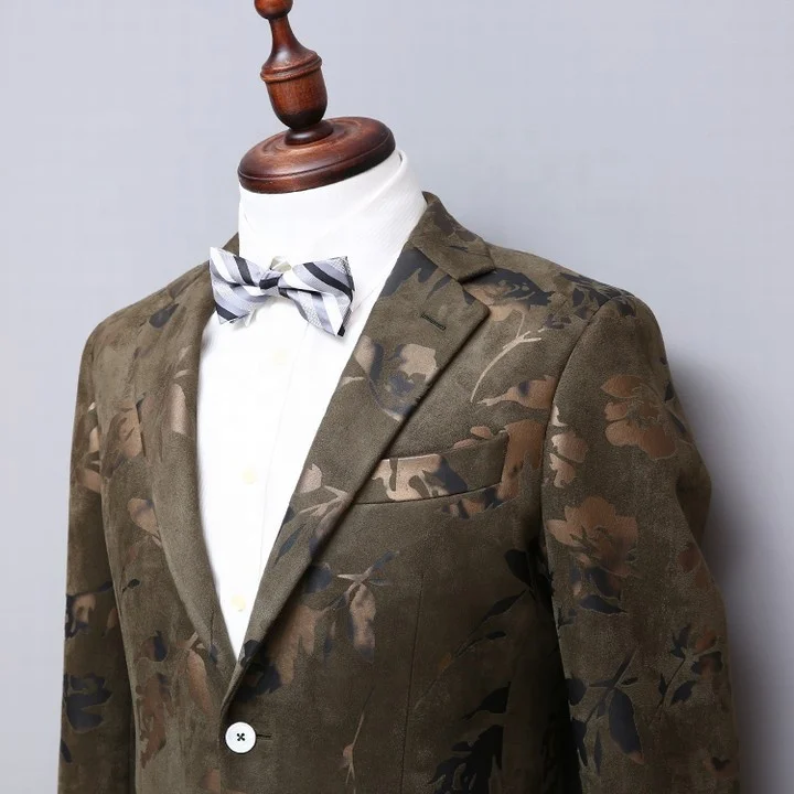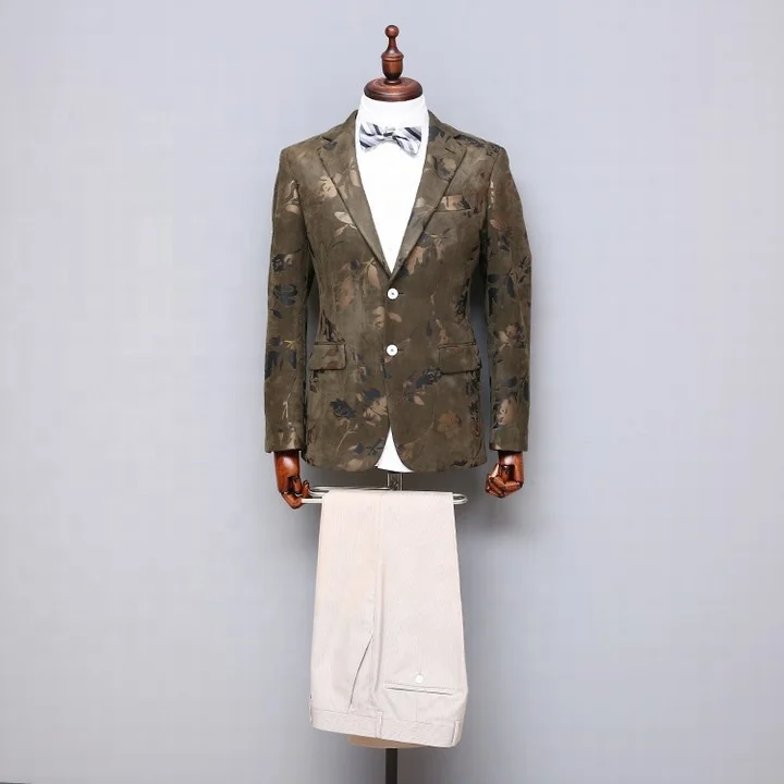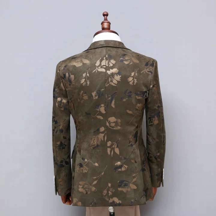 MTM Fashion Men's Green Single-Breasted Blazer Suit Custom Printed Official Green Pants Zipper Fly Flat Front Style-Wholesale