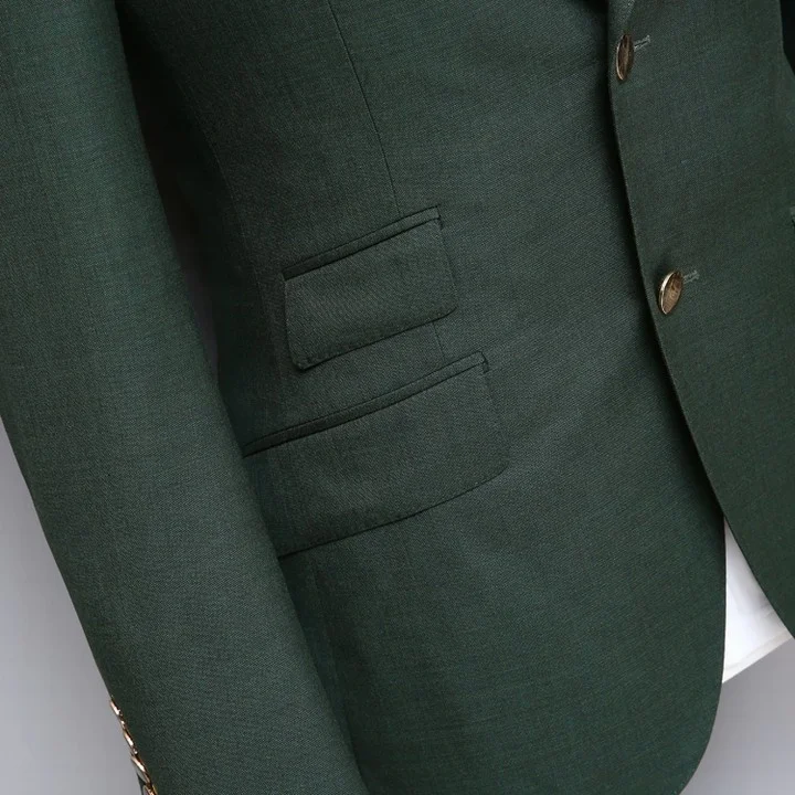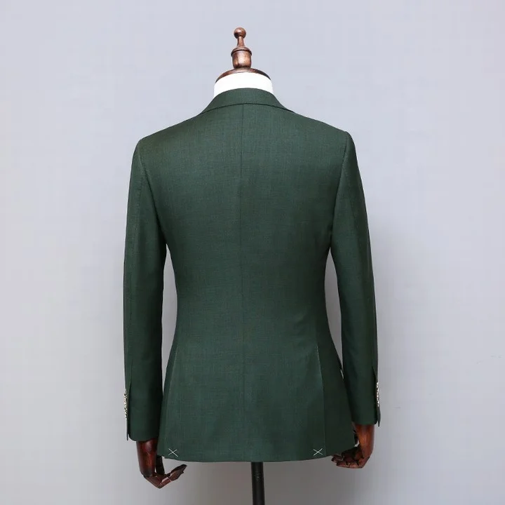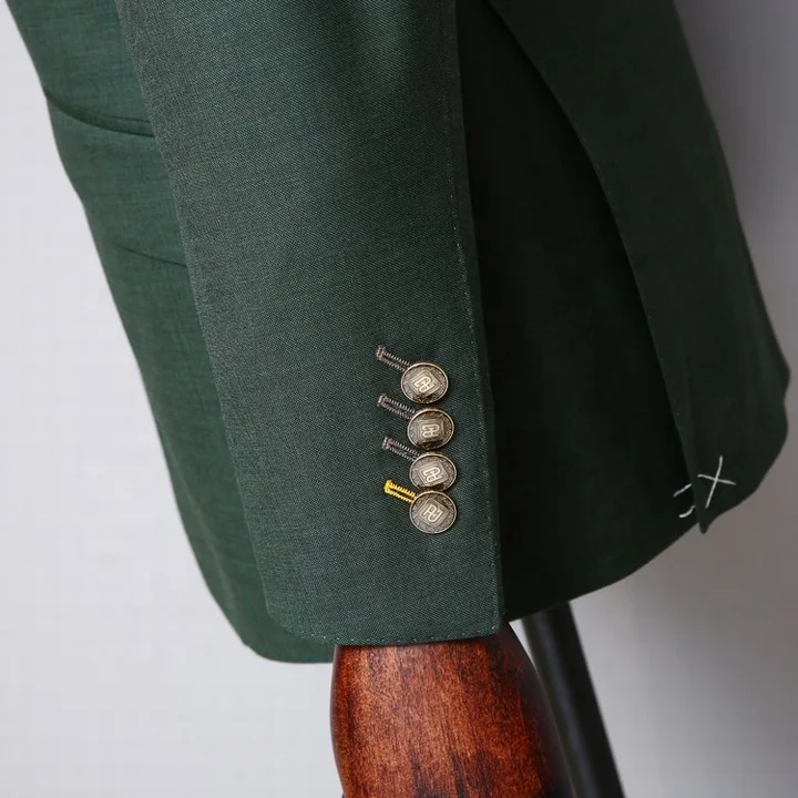 Bespoke Men's Casual Slim Green Blazer Pant Set Fashion Design Single Breasted Closure Plus Size Woolen Fabric Zipper Fly Jacket